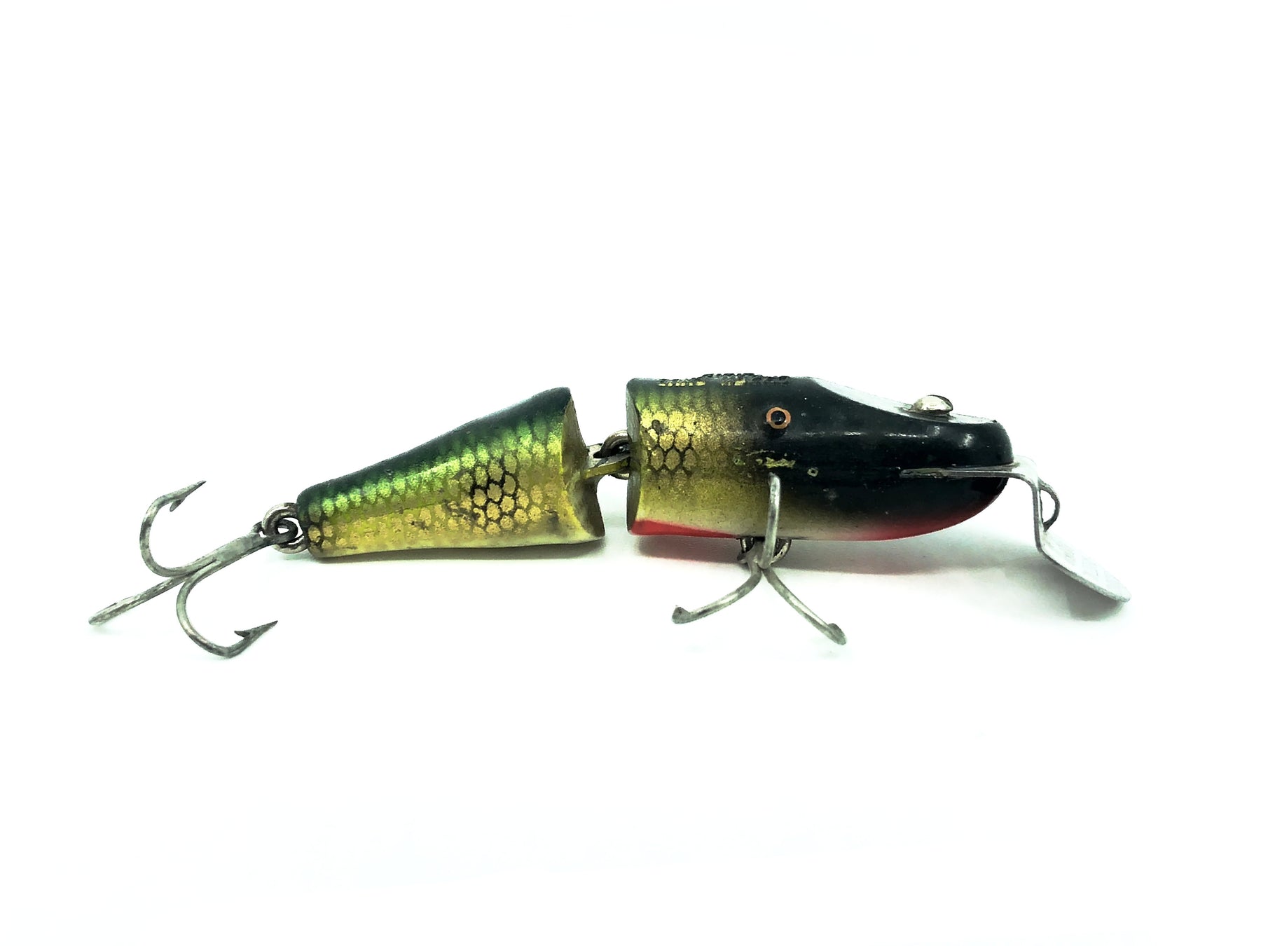 Creek Chub 9400 Jointed Spinning Pikie, Perch Scale Color 9401. About 2 1/2" long. Vintage plastic lure. Used lure with some minor wear and waxing but in overall good condition, see photos. Collect or fish this great vintage lure.