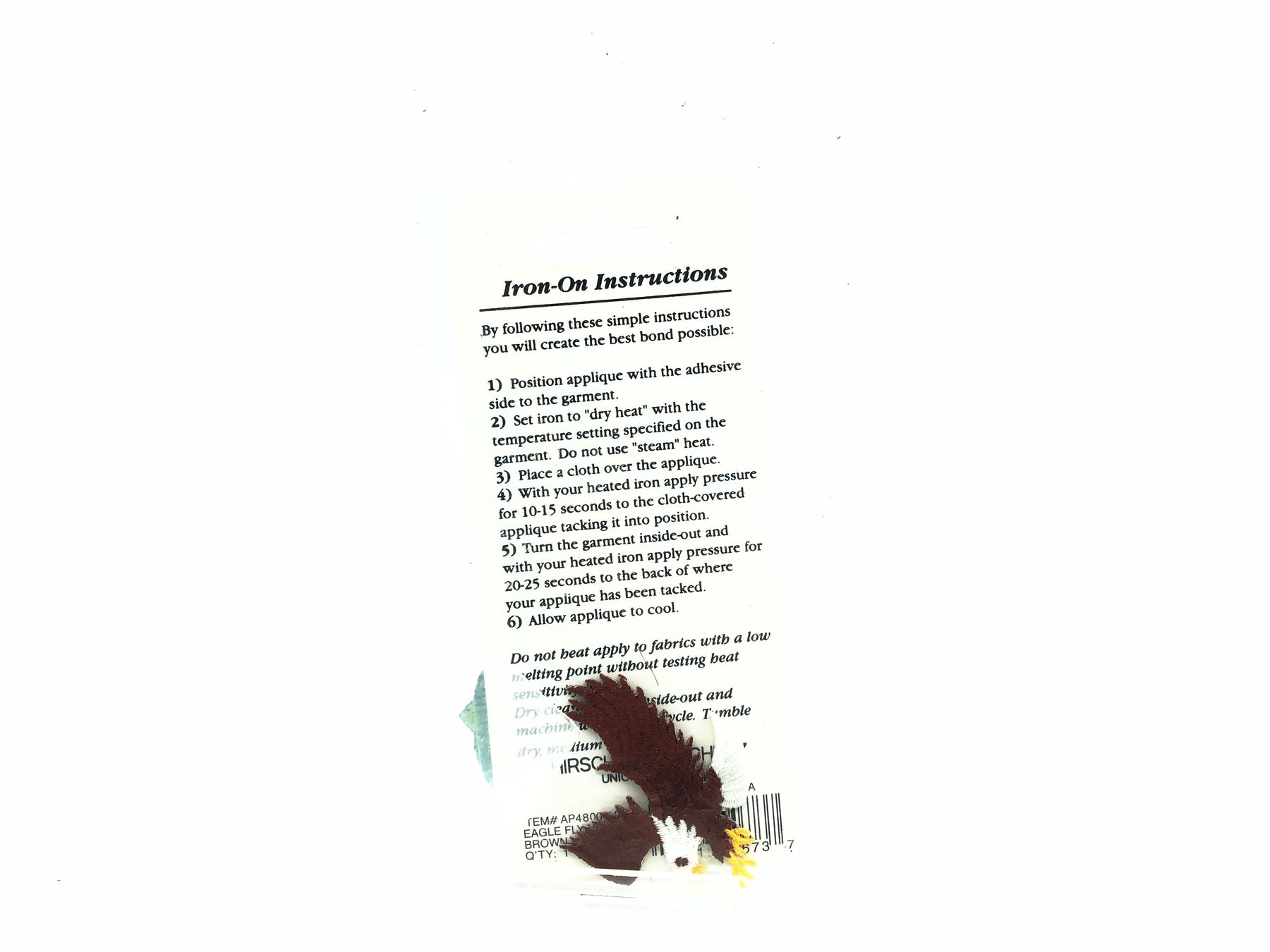 Hirschberg Schutz Iron-On Appliques, Eagle & Bass. Cool vintage iron-on patches here. Both are still with its original packaging and in good condition. Each are about 1 1/2" long. See photos.