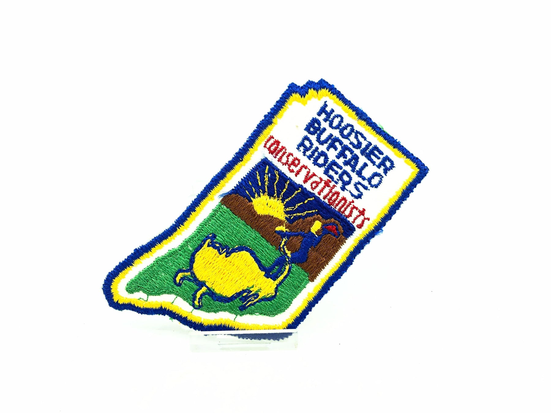 Hoosier Buffalo Riders Conservationists Patch. About 4 1/2" x 2 1/2". Used patch with some minor wear and marks, but in overall good condition. See photo. These look awesome with your display or put on your gear. Add to your collection today!