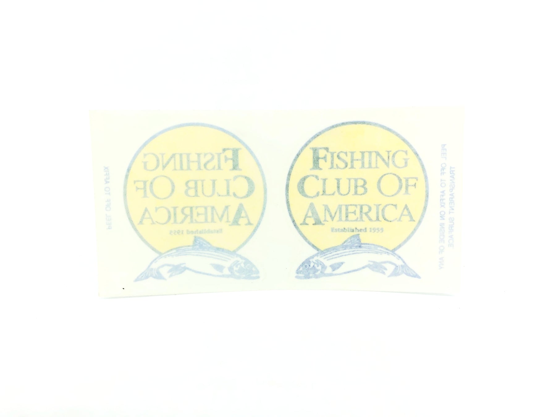 Fishing Club of America Sticker & Window Decal Combo. This pack includes both a sticker and a window sticker. Both are about 1 3/4" x 2 1/4". Unused and in nice overall condition. See photo. These look awesome with your fishing lure display or put on your fishing gear. Add to your collection today!