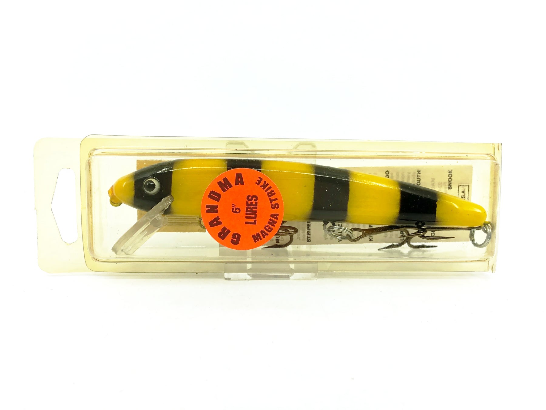 Grandma Classic 6", #62 Bandit / Jail Bird Color on Card. Premium Musky bait here. Lure is new on card, card is in good condition.  See photos.  Great musky bait.  Grab this one while you can.  Very desirable color.