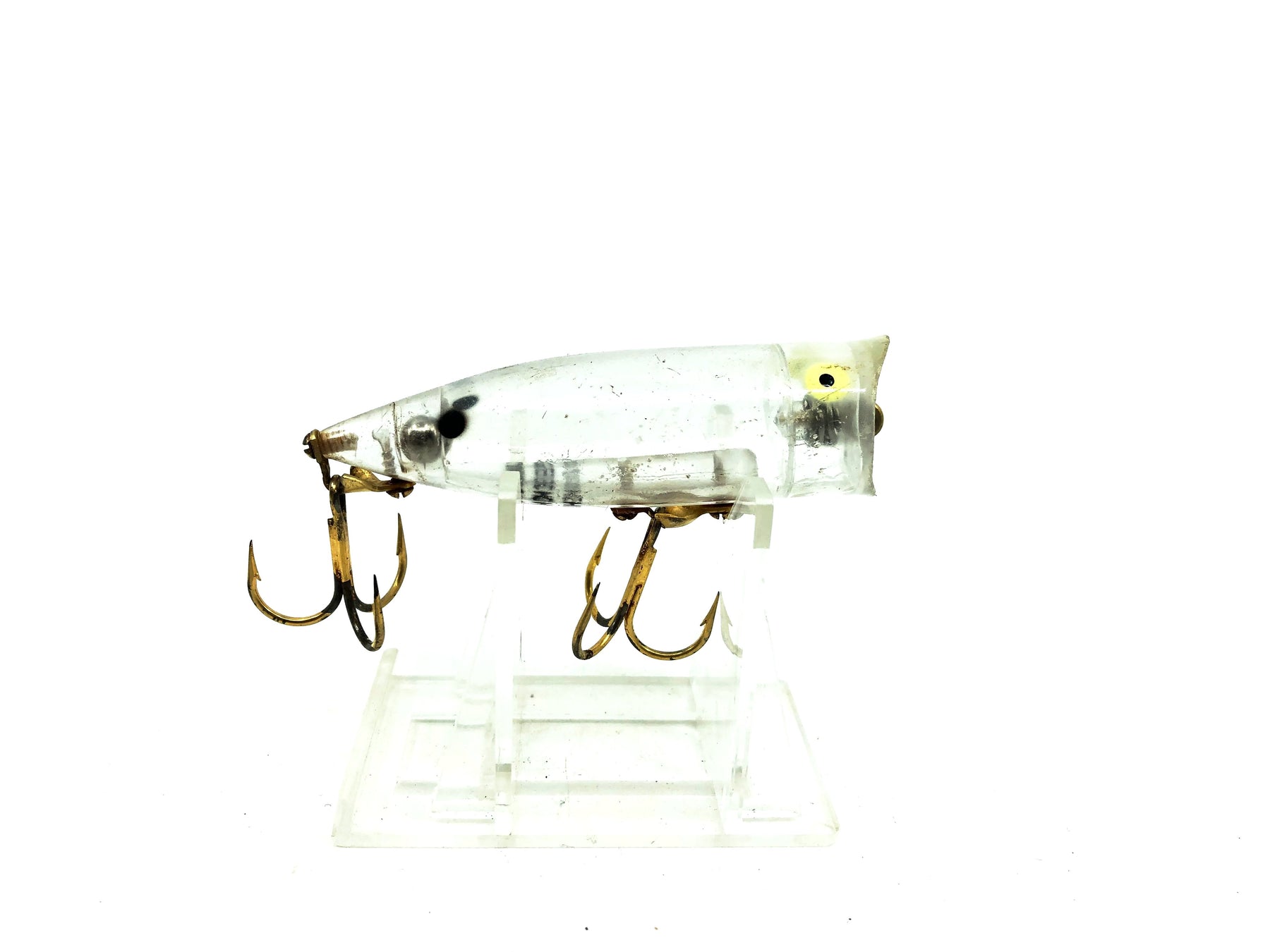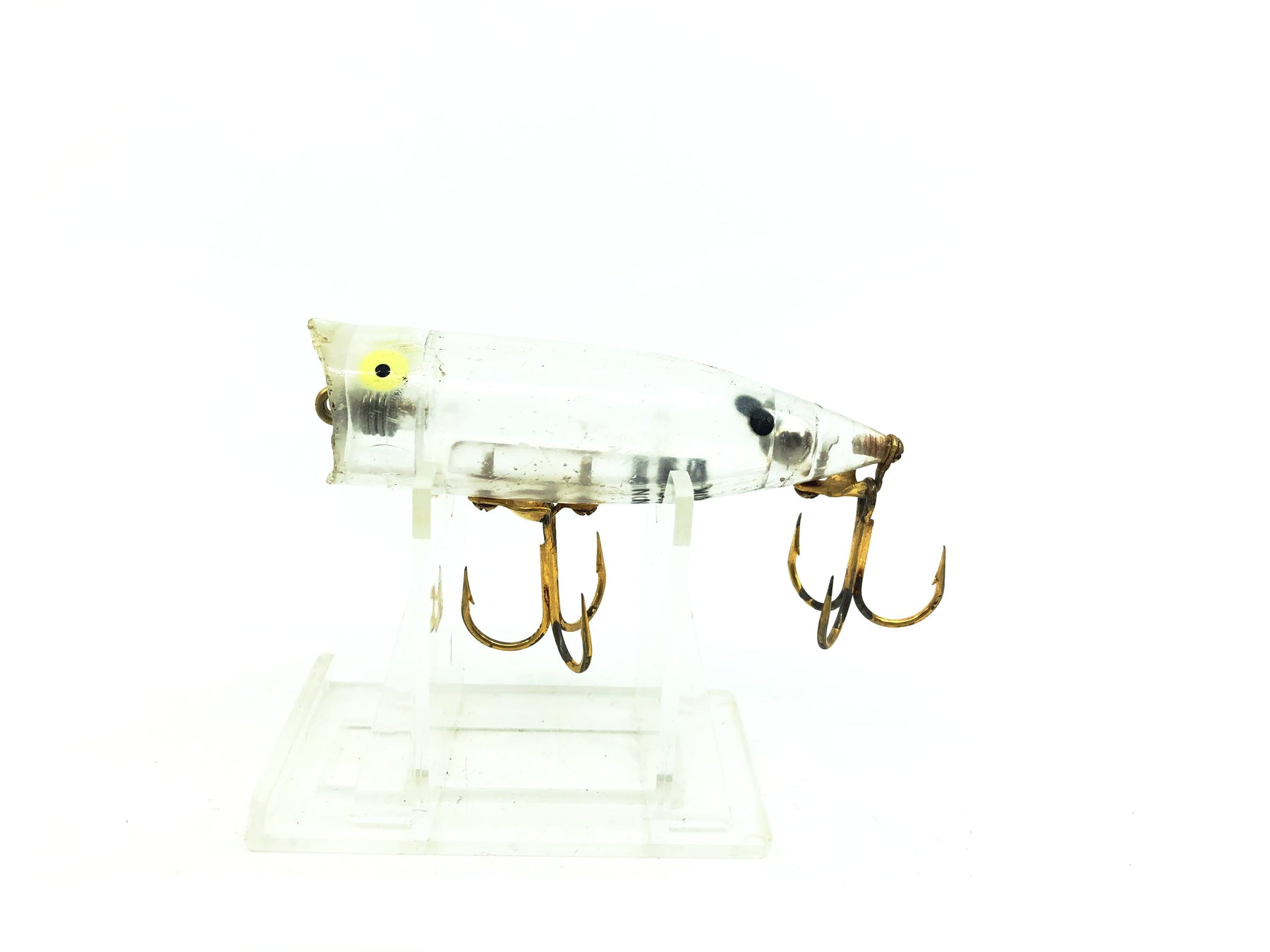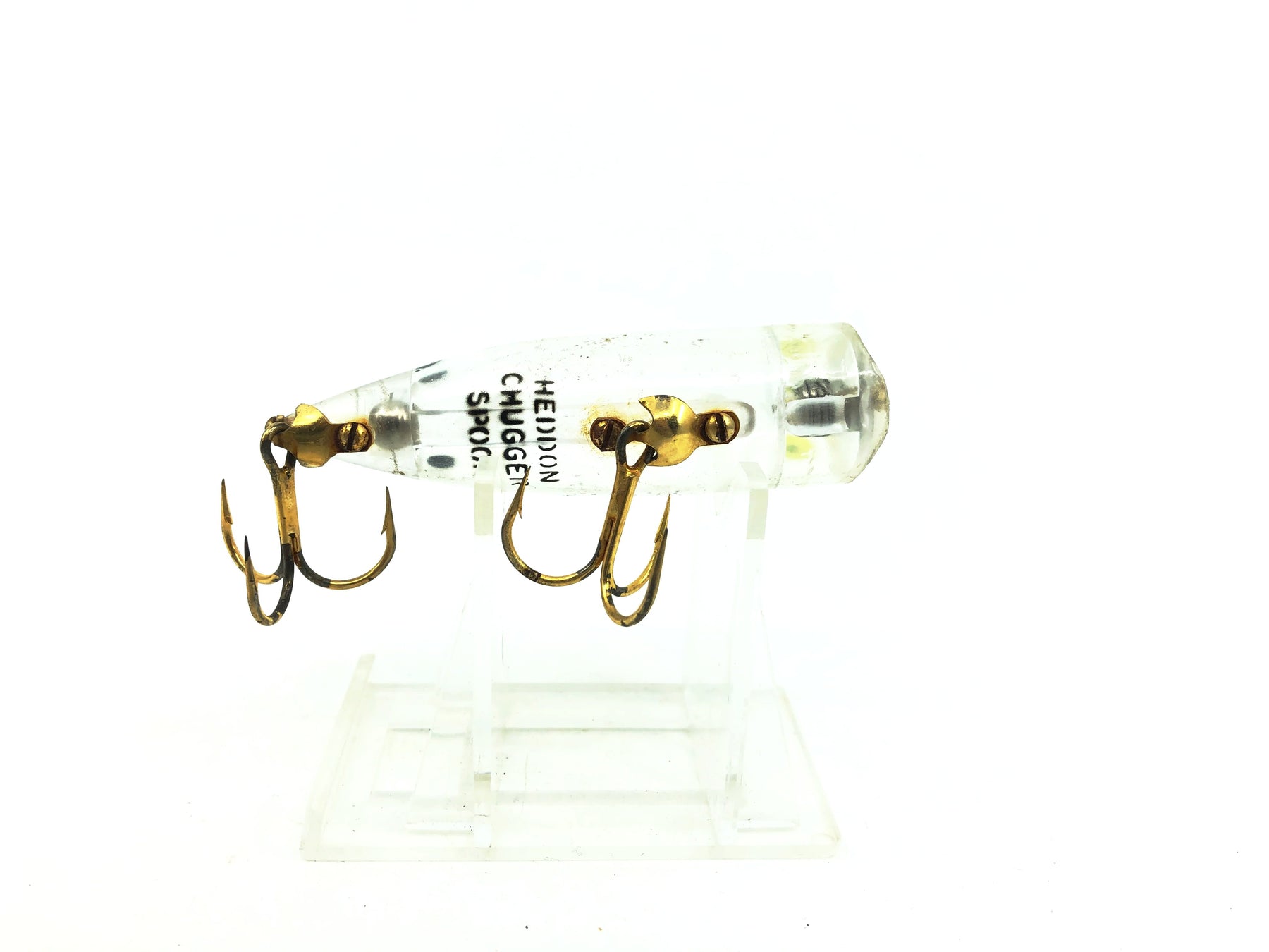 Heddon Chugger Spook 9542, C Clear Color. Great used Heddon bait here. Lure is used and has some wear but still in good condition, see photos. One thing to note is this lure unique hardware which is gold and seems to be more reinforced than a standard Chugger. Lure is about 3" long. Grab this one while can!