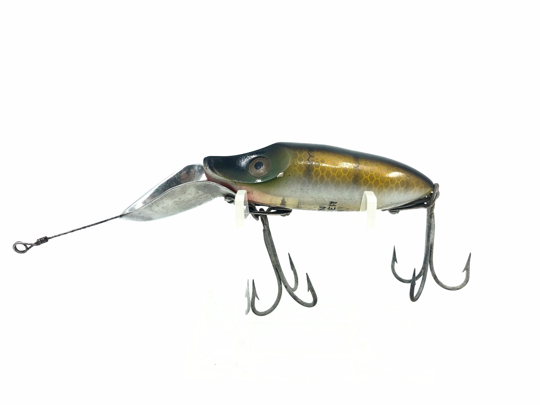 Heddon Go-Deeper River Runt D-9110-M Pike Color. Used vintage lure with some minor wear but in overall good condition, see photos. About 2 1/4" long excluding the lip. One of the most iconic fishing lures of all time. Collect or fish you can't go wrong with a Heddon River Runt.
