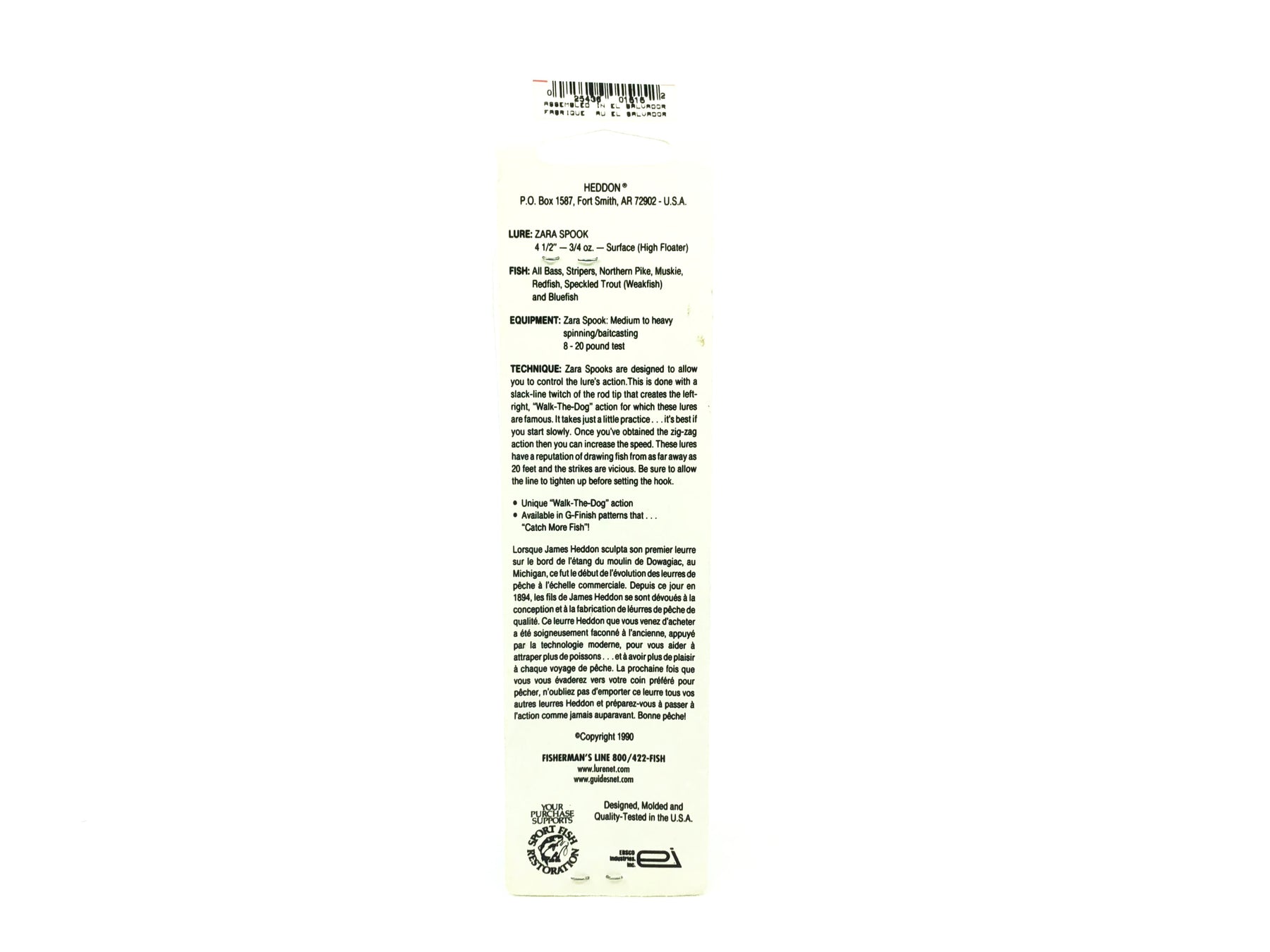 Heddon Zara Spook, SMGS Green Scale Color on Card