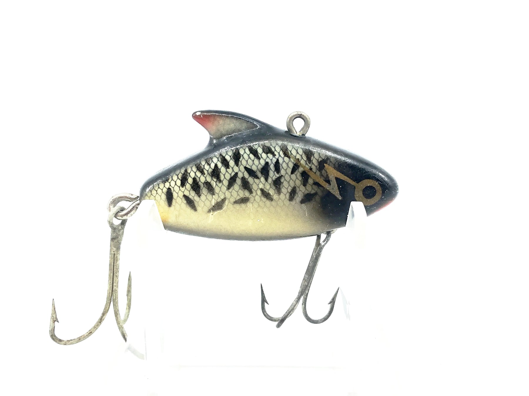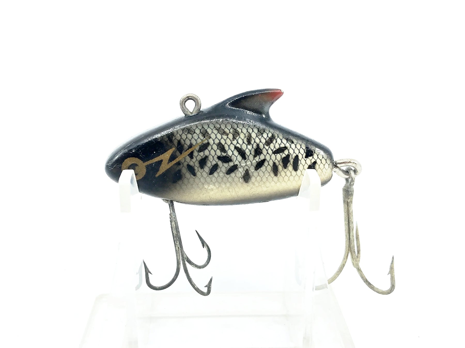 The original lure ever to use sound sensation in attracting fish to strike. It vibrates! We sold a million of these babies in its first year. The Sonic resonator fin sends out irresistible waves of high frequency both heard and felt by fish. This principle is so good we registered the name and the little resonator fin. Casts like a bullet! Goes down fast because of the small body and heaw weight. Perfect for fishing deep on "structures". A killer on striped bass, walleye and northerns. A favorite of saltwater fishermen too -Excerpt from Heddon 1984 Catalog