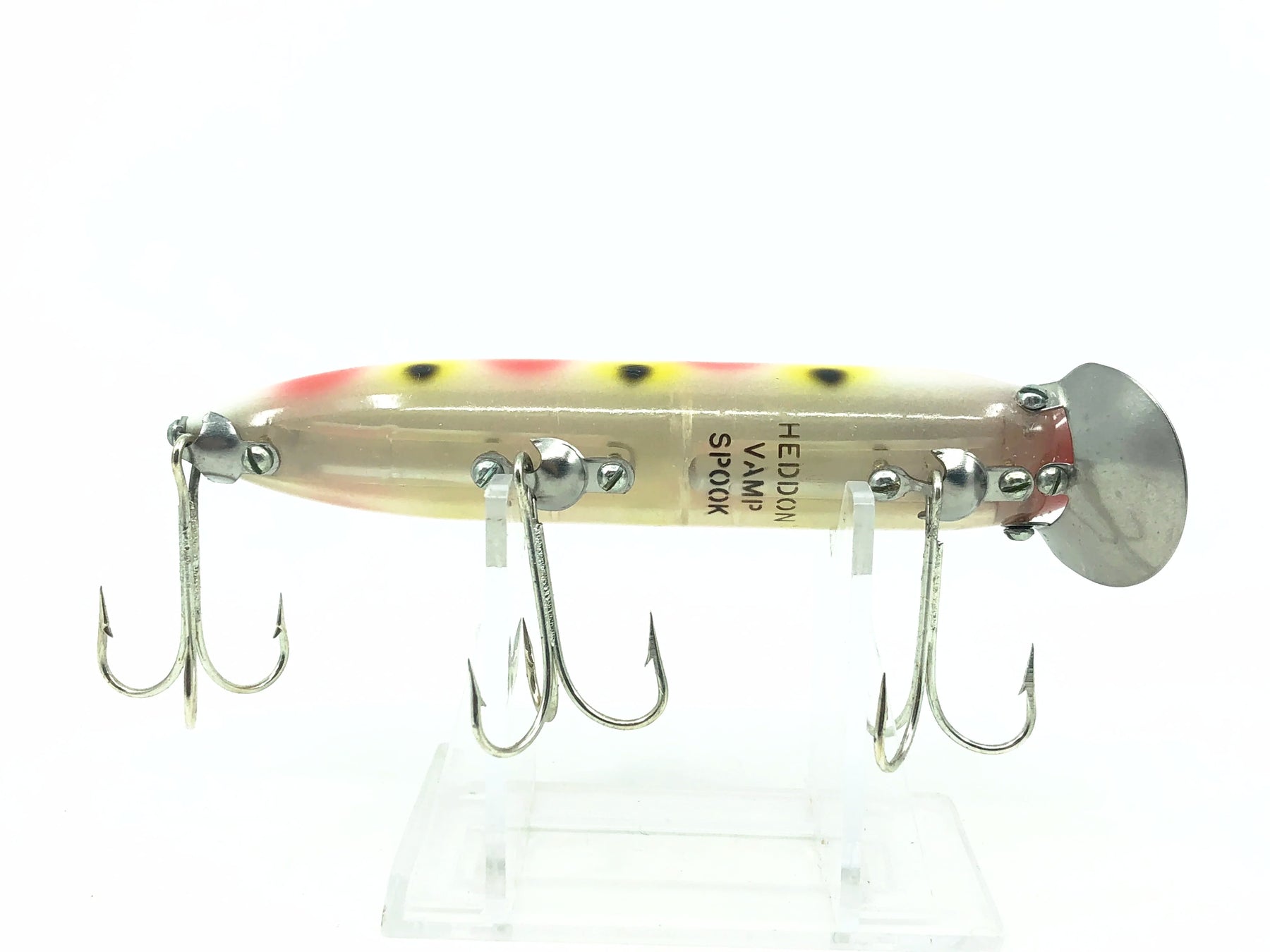 Heddon Vamp Spook, S Strawberry Color. Tough color to find. About 4 1/4" long not including lip. Used lure with some minor wear but overall very good condition. Classic Heddon bait to fish or collect. See photos. One of the best baits ever made!
