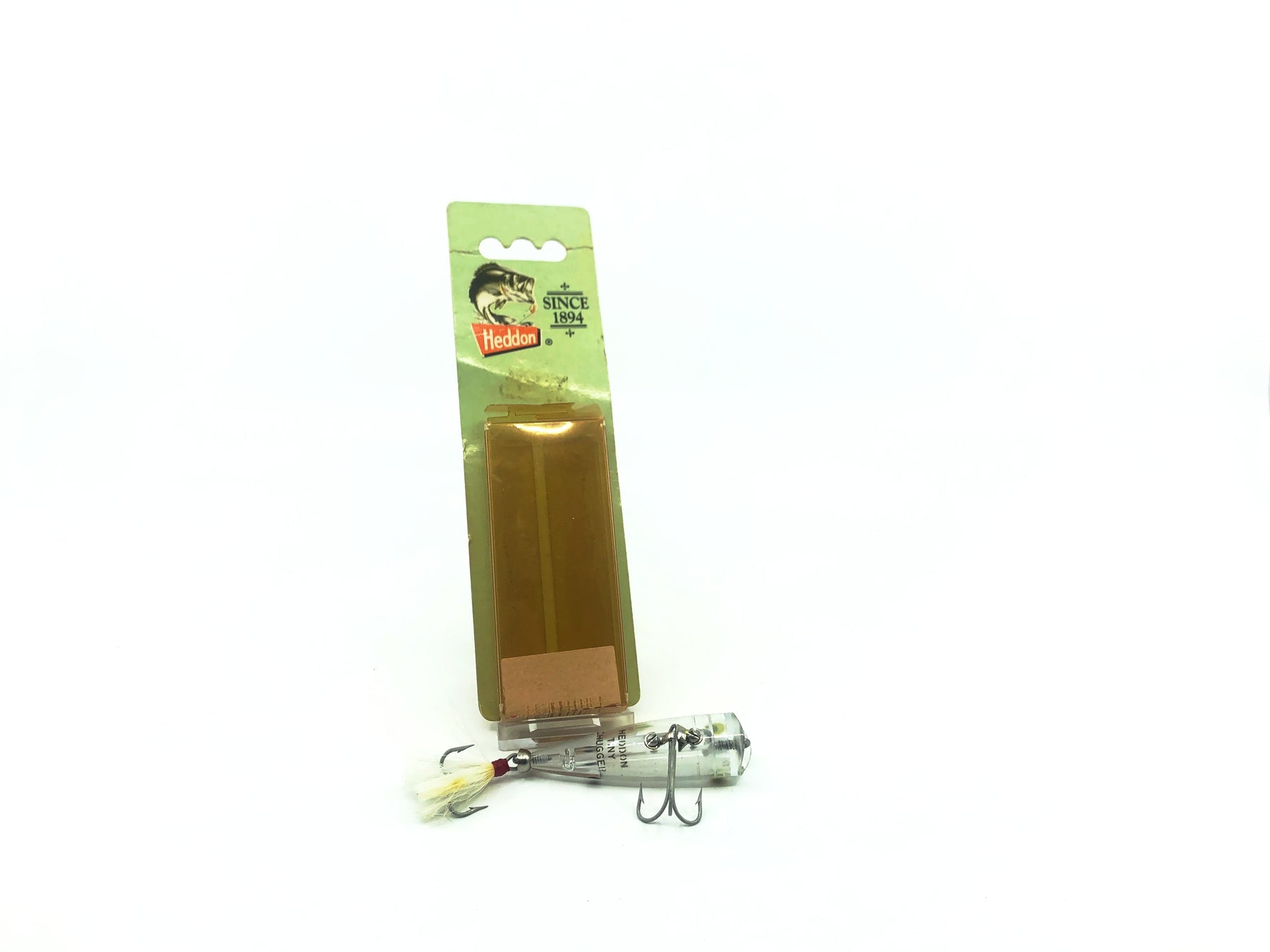 Heddon Tiny Chugger, C Clear Color, with Card. About 2 3/8" long. Card is in ok condition with one end of the bubble cracked. Lure is in good condition with very littler wear, see photos. Fish or collect a classic Heddon bait.  Tougher color to find!