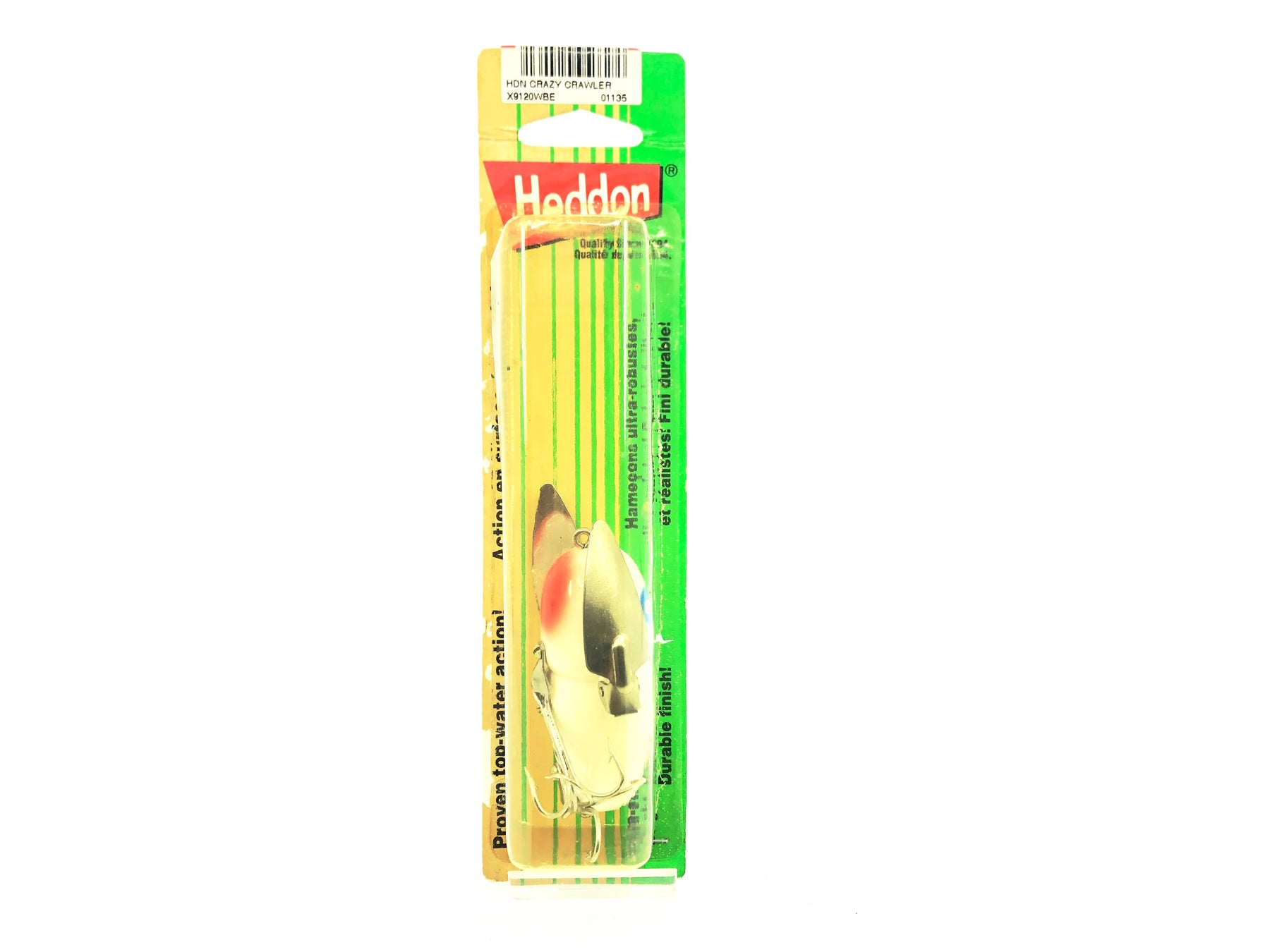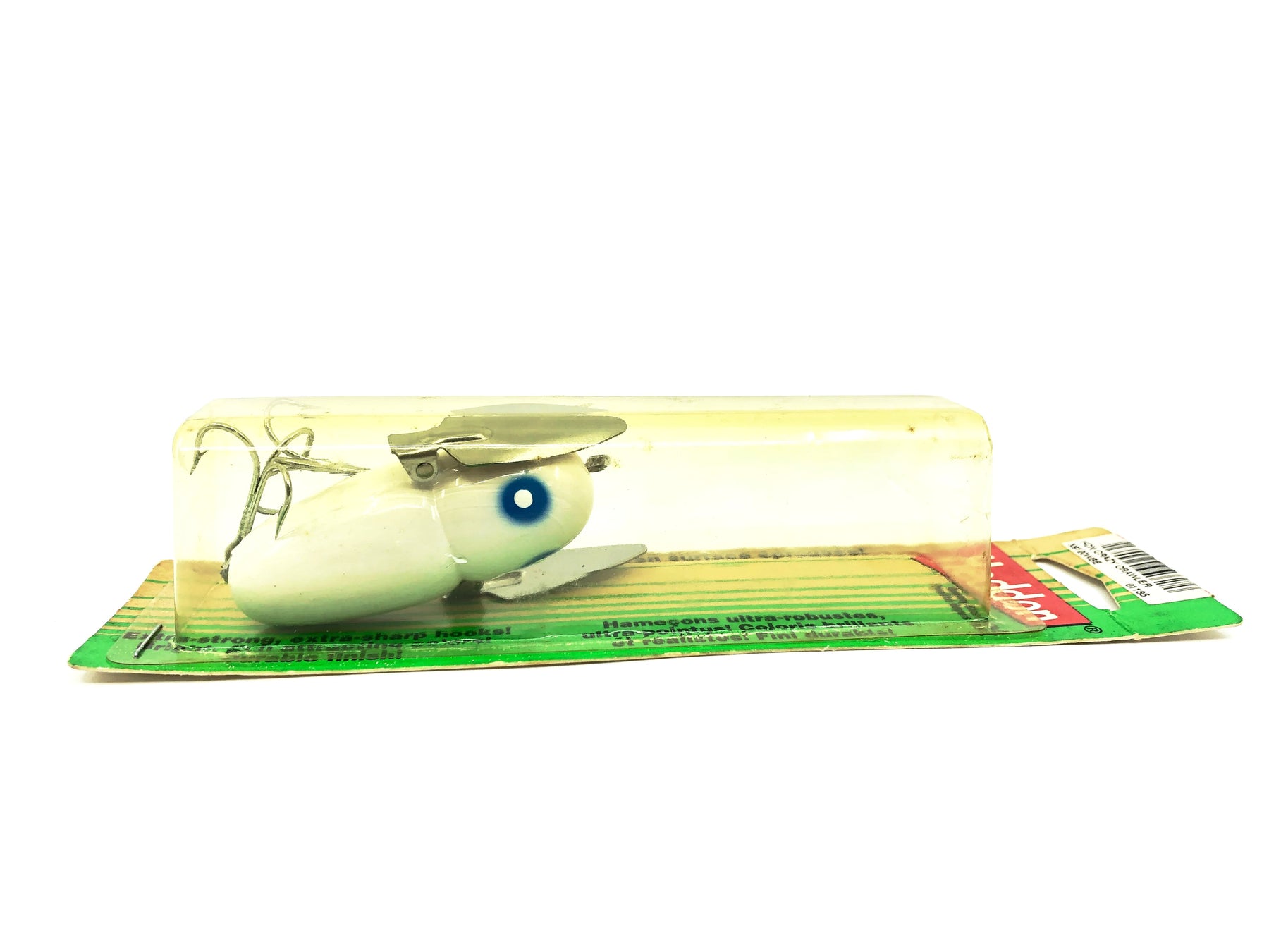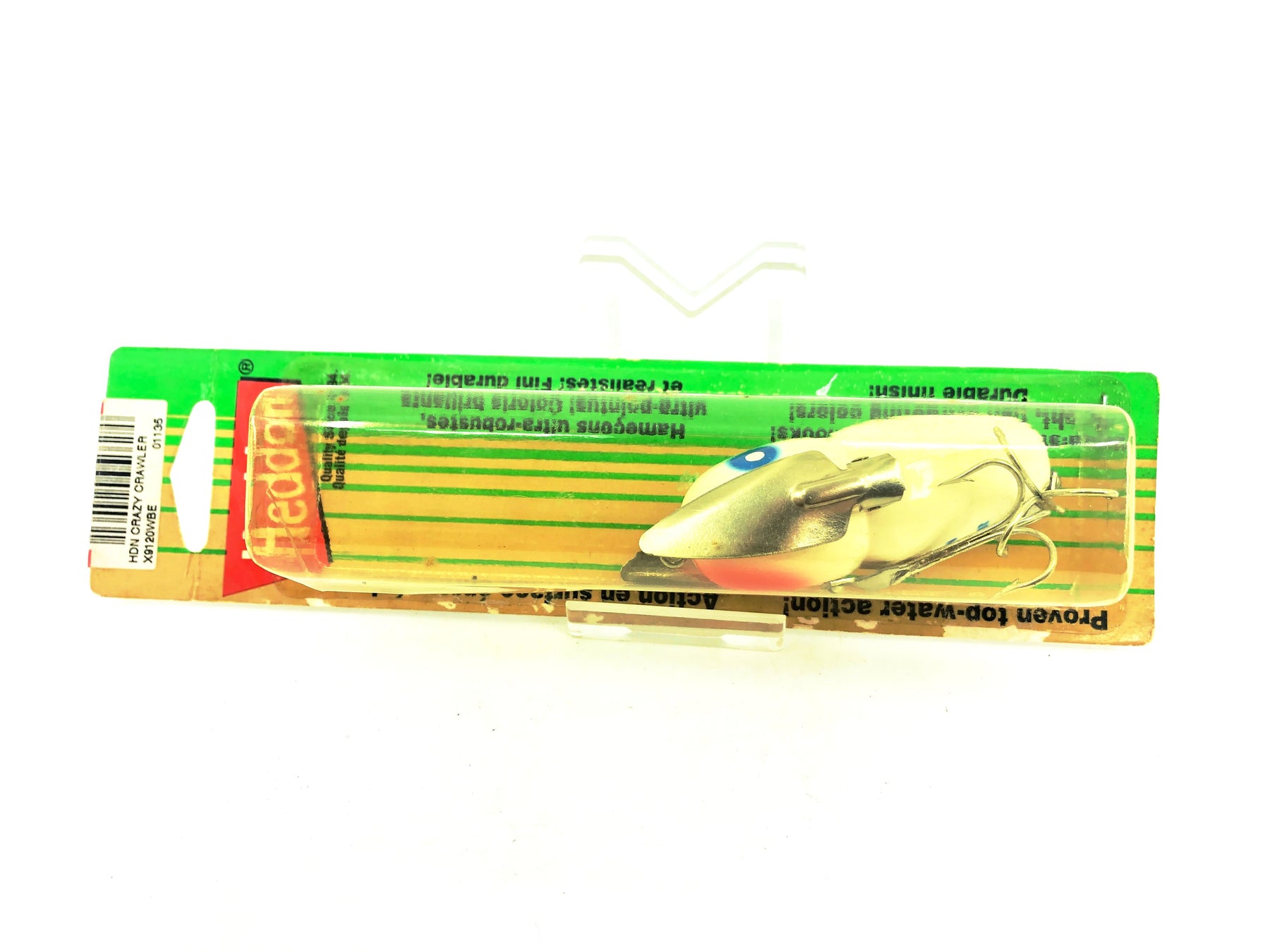 Heddon Crazy Crawler, WBE Blue Eyed Albino Color on Card. Great Japanese color Heddon. Lure is about 2 1/2" long. Color was mainly sold in Japan. This lure is new on card. Card is in good condition with some minor wear, but in overall good condition. Great combo here, fish or collect.