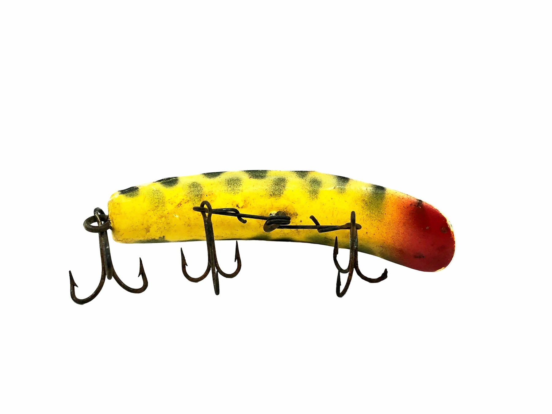 Helin Flatfish X4, Coachdog Color.  About 2 1/2" long.  Used with only some minor wear and marks but still in overall good condition, see photos. One of the most successful fishing lures ever made.  Fish or collect!  Vintage plastic version.
