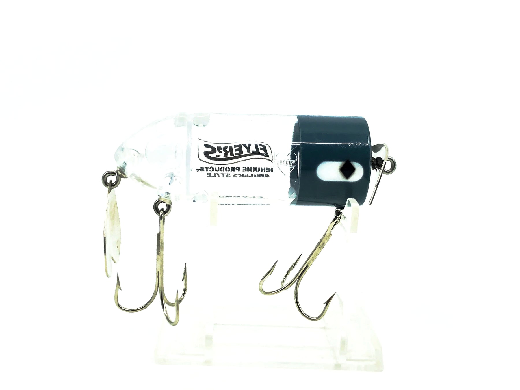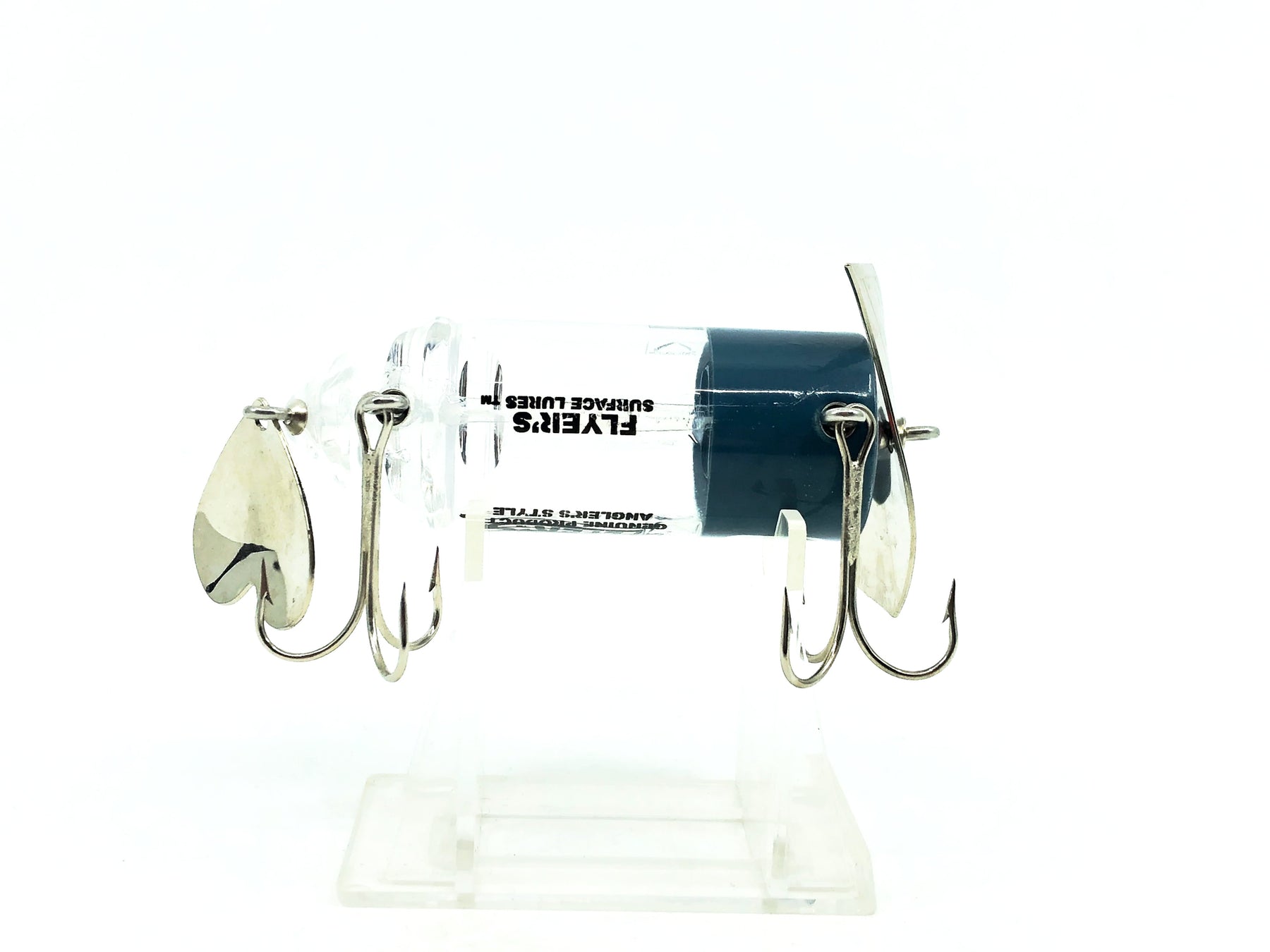 Flyer's Japanese Surface Lures, Clear/Blue Head Color. Great Japanese lure here. This lure is about 3" long overall. This lure is used but in very good condition, see photos. Fish or collect.