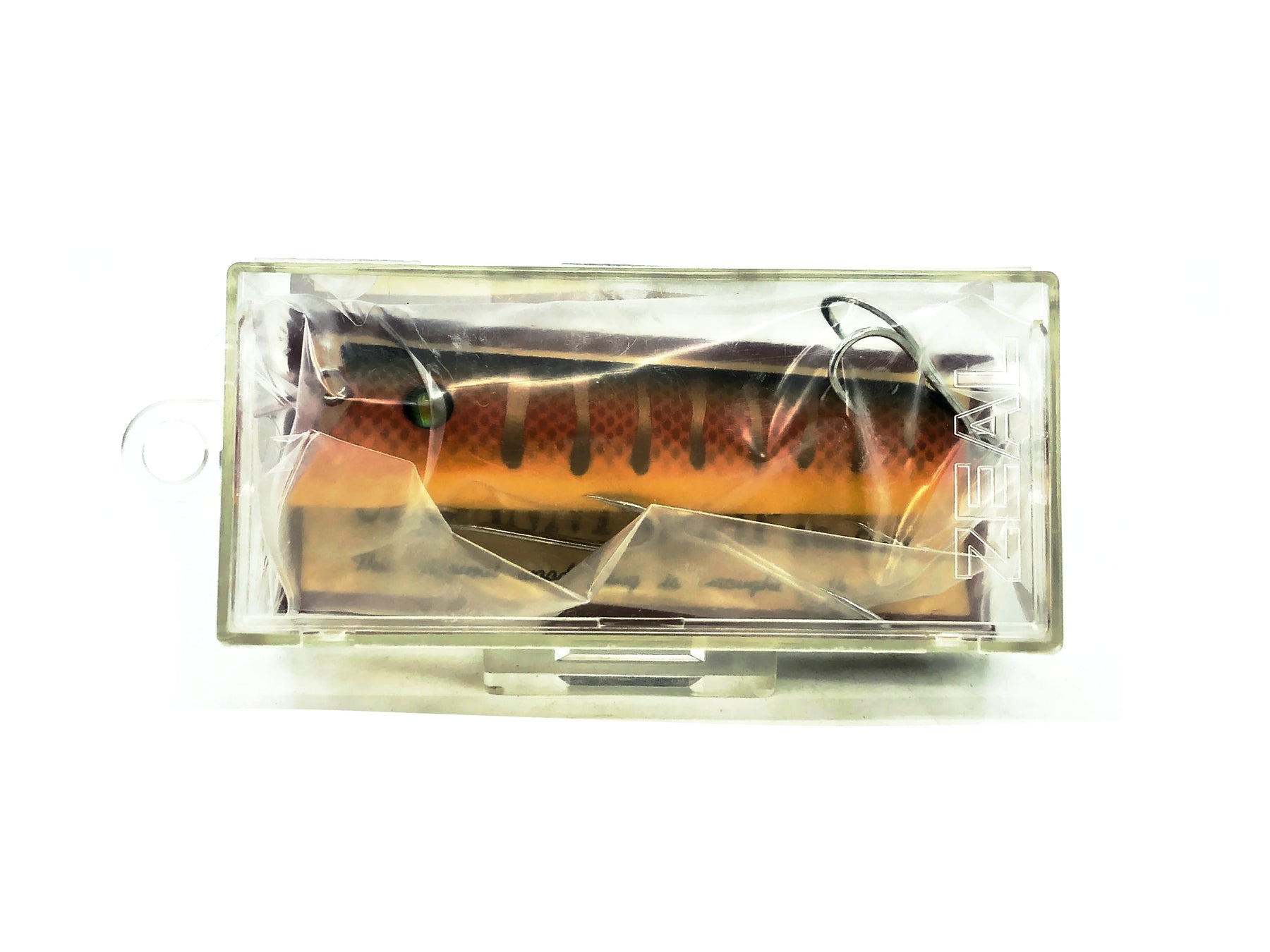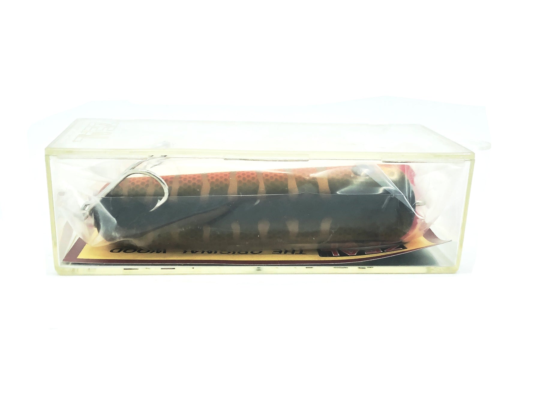Zeal Uncanny Champ, Brown Perch Color with Box. Iconic Japanese wooden lure here. This lure is about 3 1/4" long overall. Bait is new in box and the box is in very good condition, see photos. Fish or collect. Kind of like a Lucky 13.