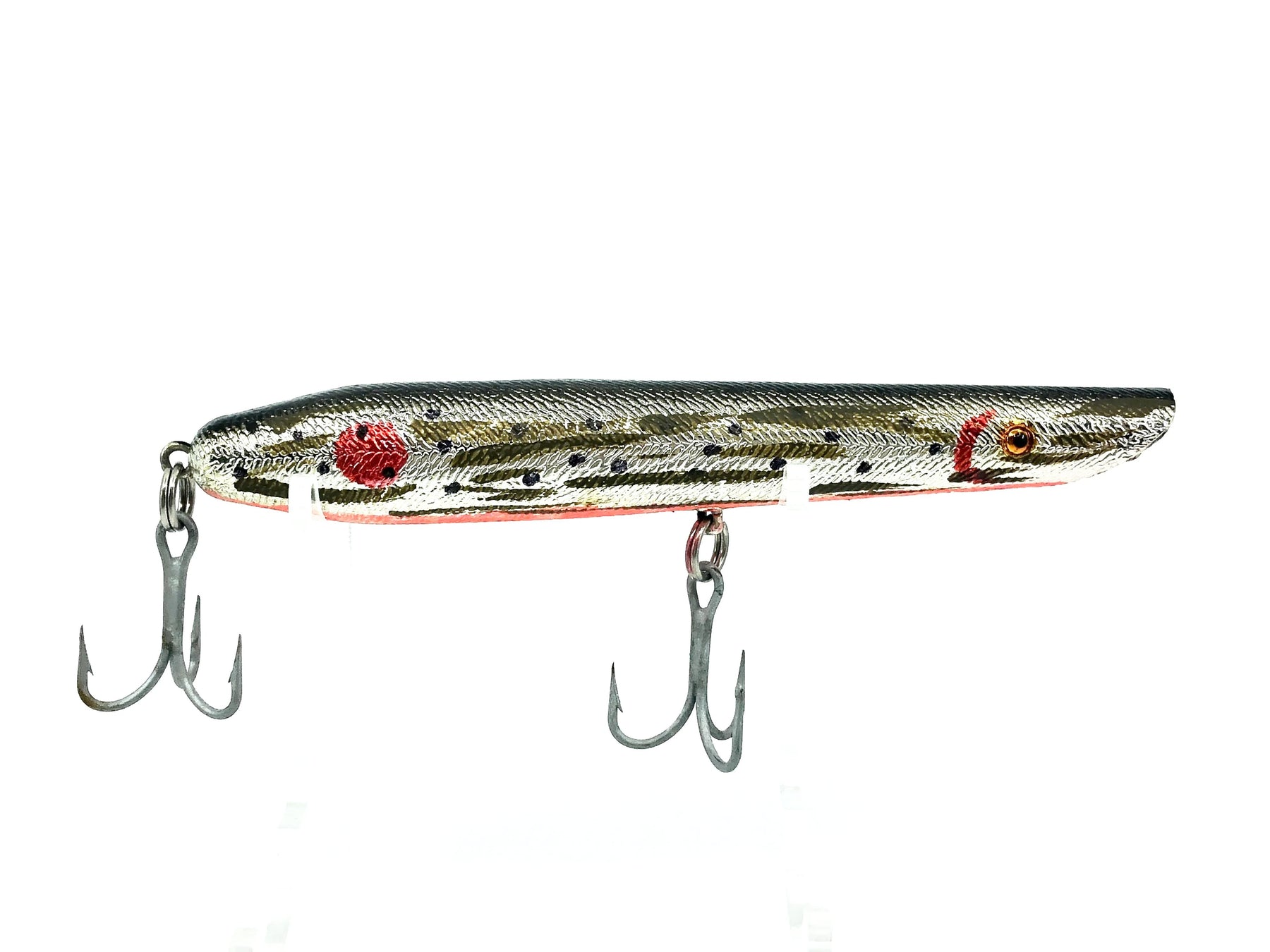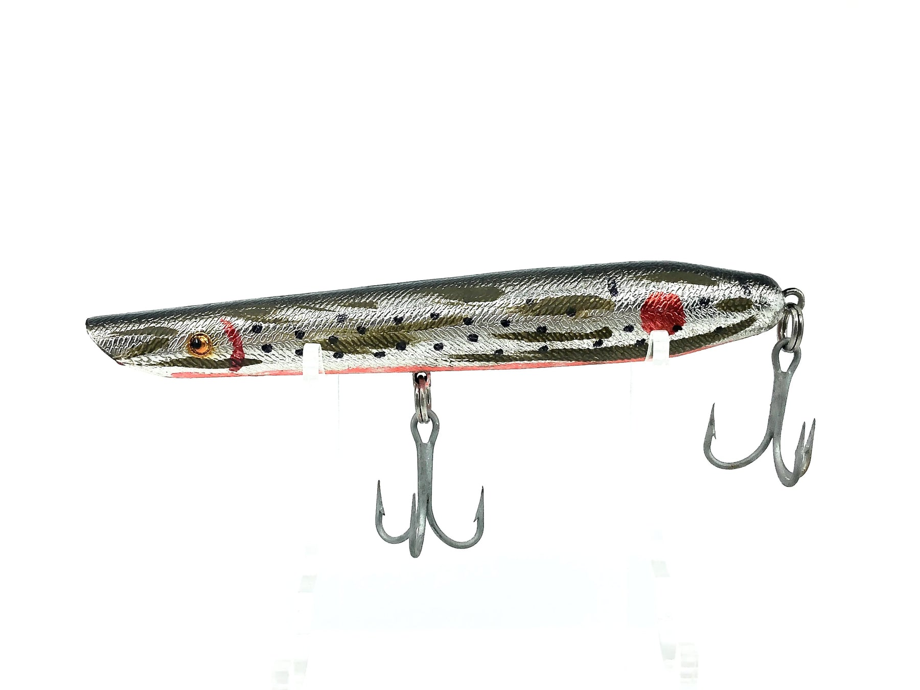 Cotton Cordell Pencil Popper 6600, Chrome/Black Back Color. Great Cordell bait from the late 70s-80s. This lure is about 5 7/8" long and weighing 1oz. Bait is used with some wear and is repainted a bit by the previous owner, overall in ok condition. Fish or collect, see photos.