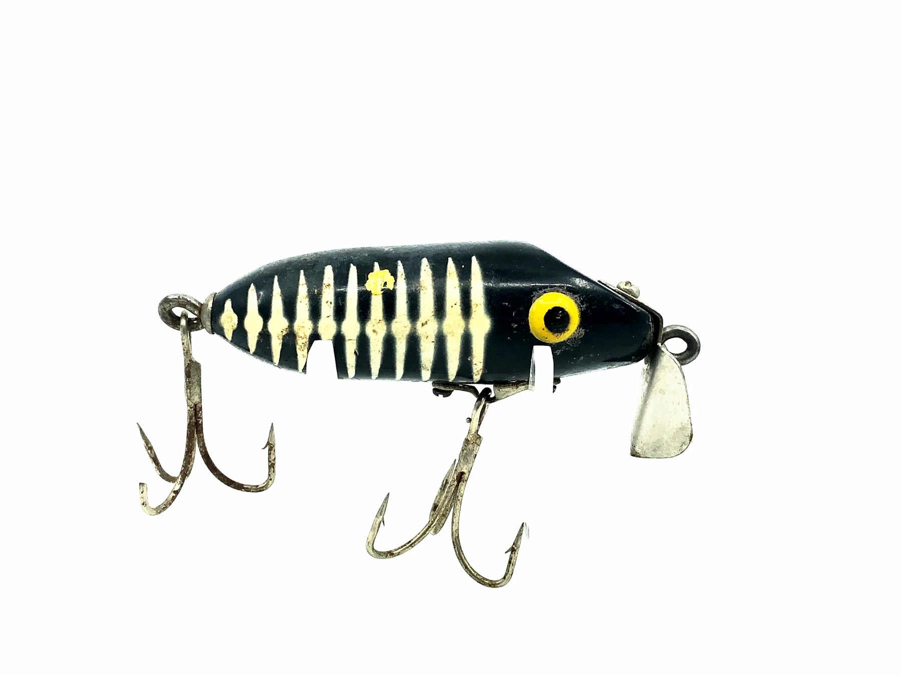 Rinehart Jinx, Black Shore Minnow Color. About 2 3/8" long body not including lip. Used with some minor wear and marks but still in overall good condition, see photos. Made by the Rinehart Tackle Company out of Newark, Ohio. Grab this one for your collection. Don't see many of these.