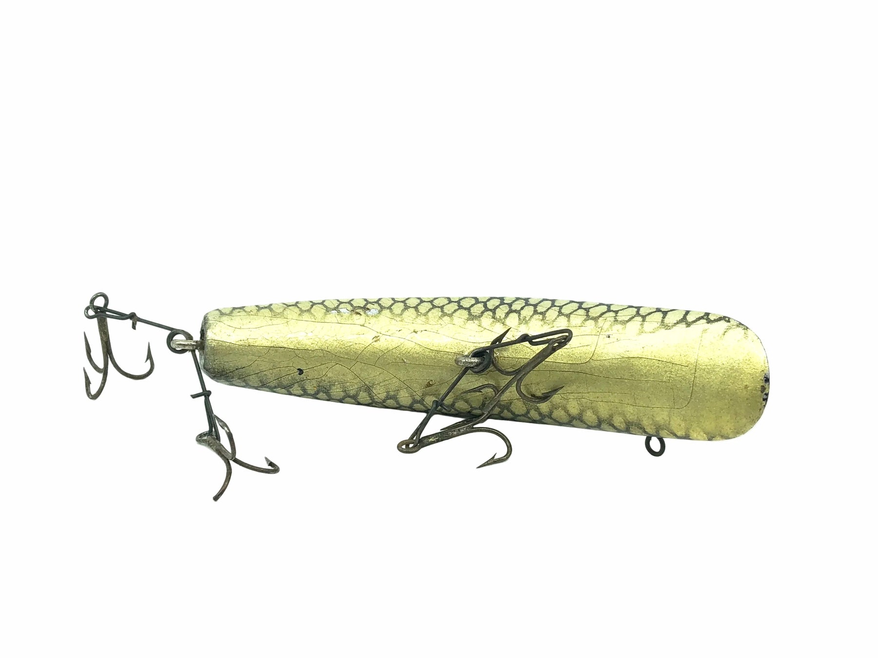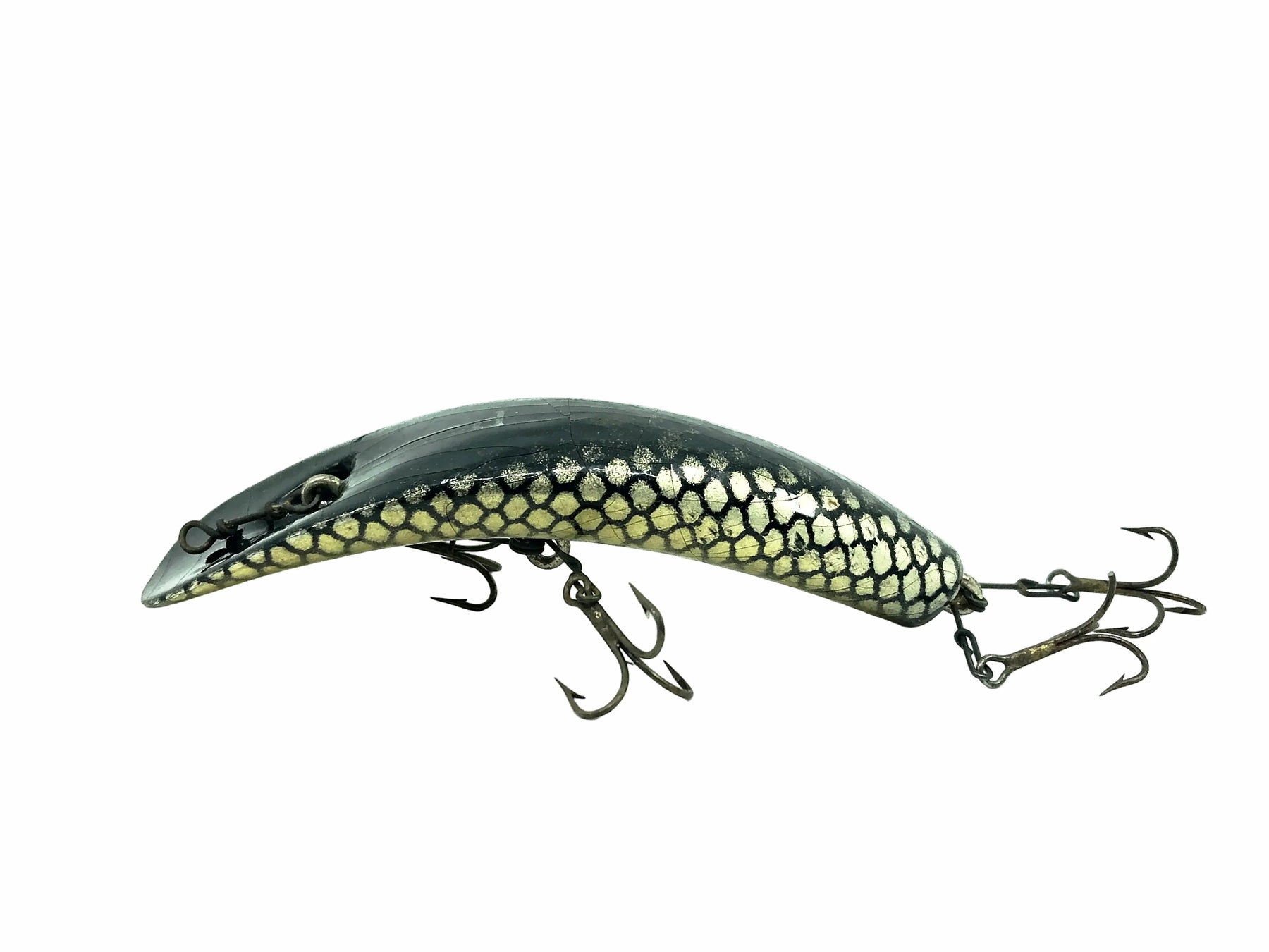Helin Flatfish P8, Aluminum Scale Color. About 4" long. Used vintage lure with some minor wear and a broken barb but in overall good condition. Classic lure here. See photos. Fish or collect!