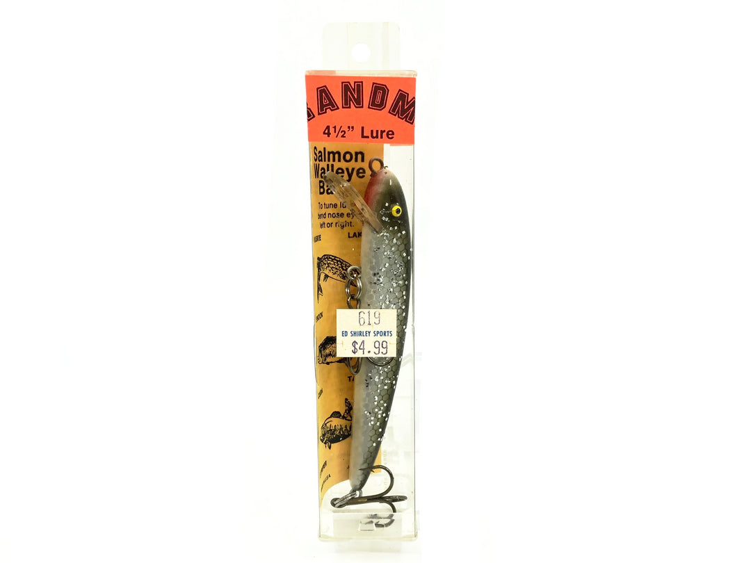 Grandma Classic 4 1/2", Silver Flitter Color w/Box. Vintage Grandma in an uncommon box packaging. Lure is new in box and the box is in good condition. See photos. Great musky bait. Grab this one while you can.