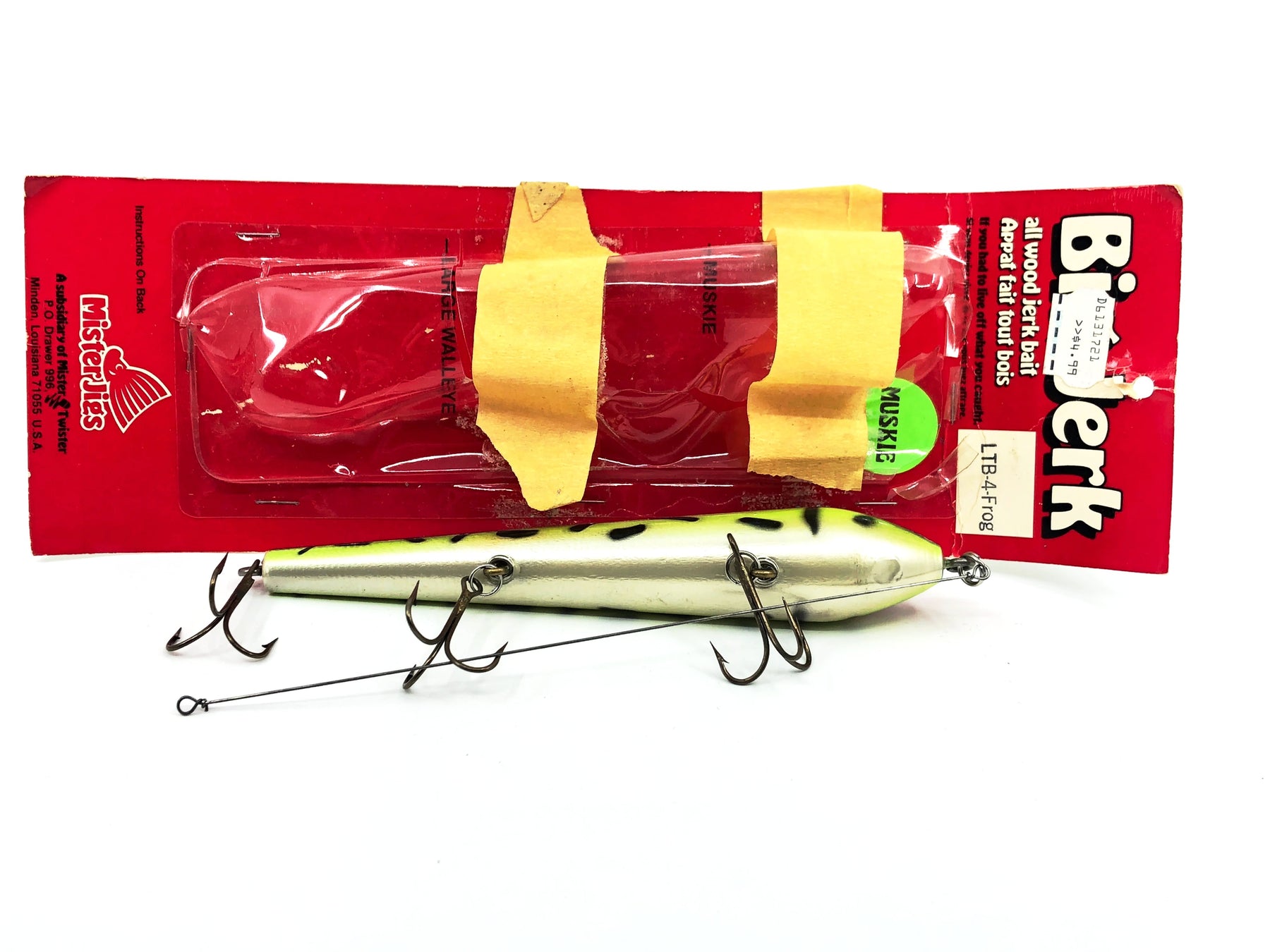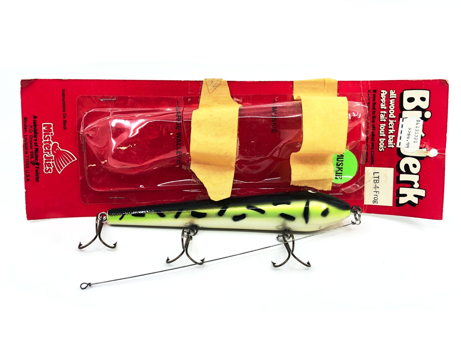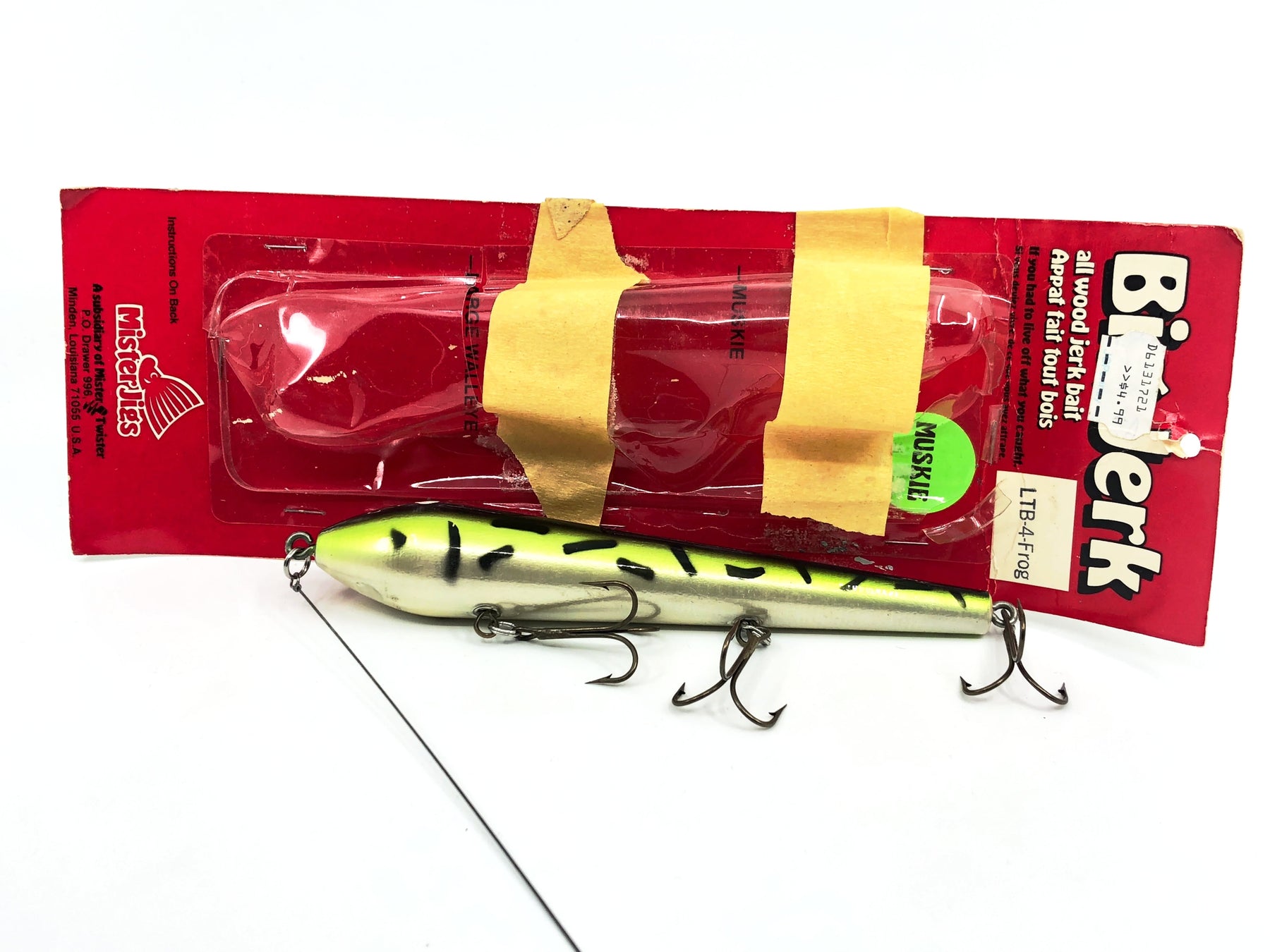 MisterJig Big Jerk, Baby Bass Color with Card. Discontinued bait from MisterTwister. This lure is about 8" long. This card has wear and the bubble is opened up. The lure is in new like condition but is no longer on the card. Fish or collect, see photos.