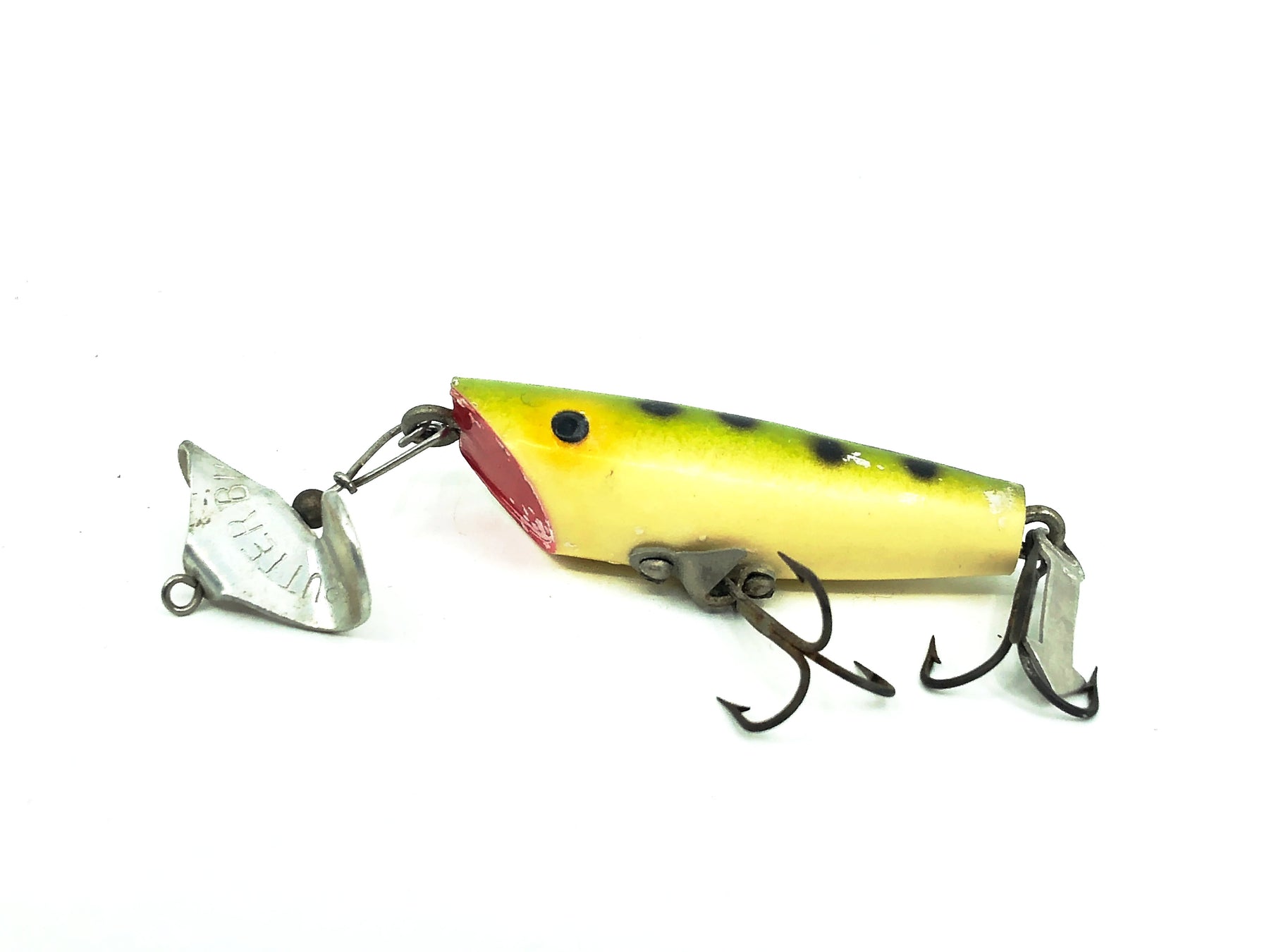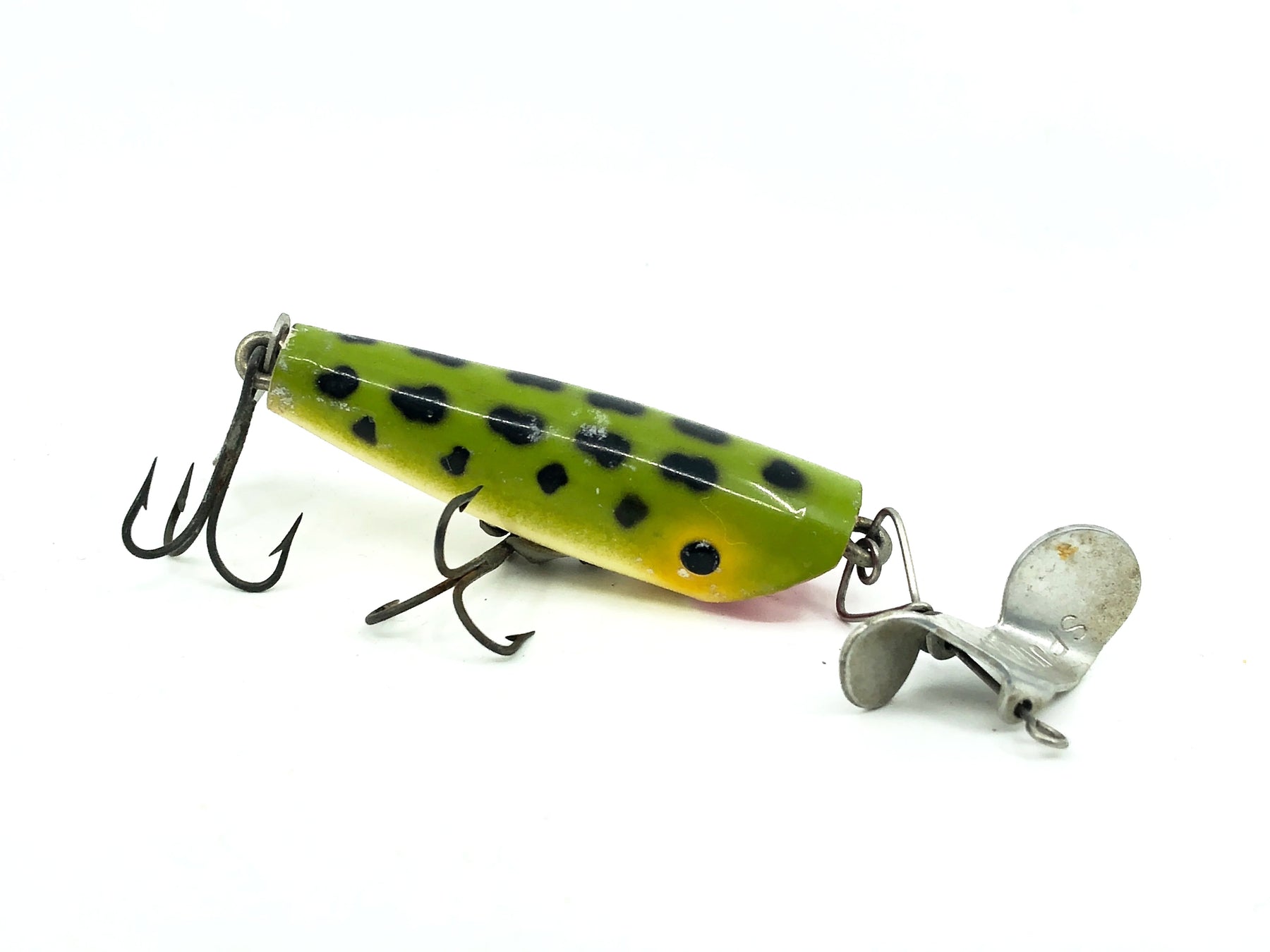 Arbogast Sputterbug, Frog/White Belly Color. Great discontinued Arbogast bait here. Body of lure about 2 1/8" long. This bait is used but appears to have never been fished before and is in overall great condition. Collect or fish this one.