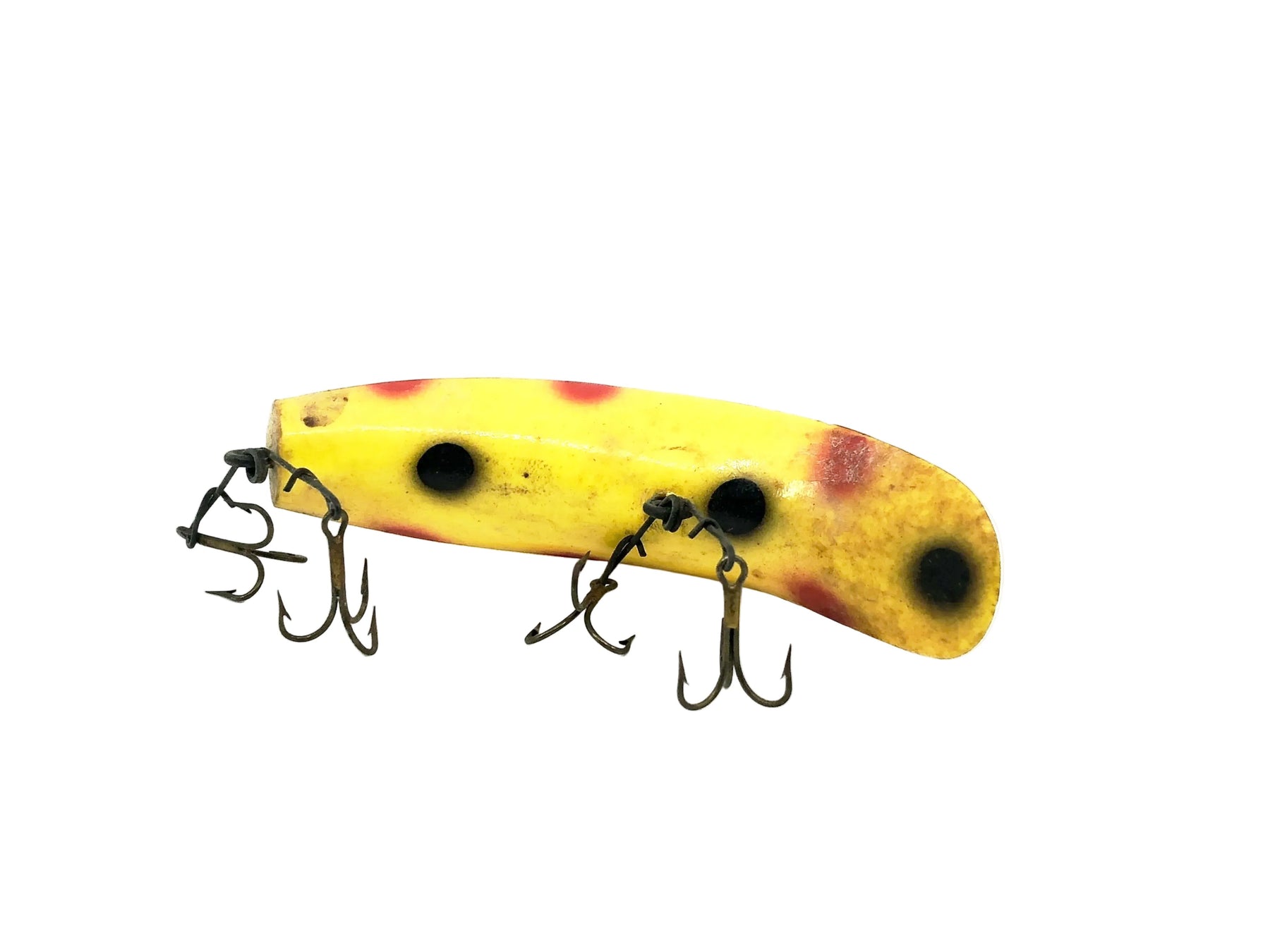 Helin Flatfish S3, YE Yellow/Spots Color. About 3 3/4" long. Used with some wear and marks but overall ok condition, see photos. One of the most successful fishing lures ever made. Fish or collect! Vintage plastic version.