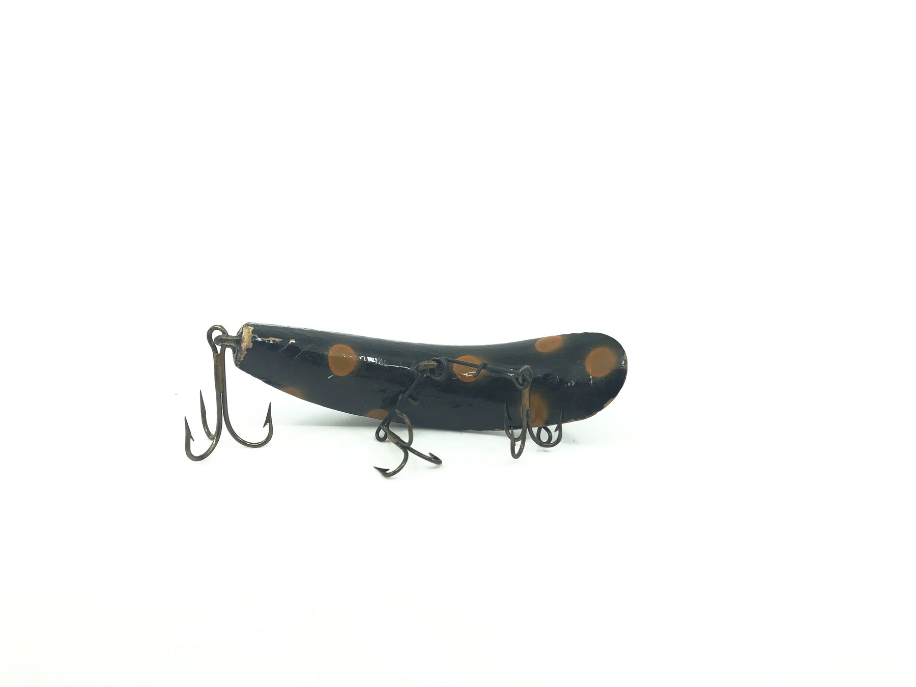 Vintage Helin Flatfish Wooden SPS Spinning Surface Black Orange Spots Color. About 2 5/8" long. Used with some minor wear but overall good condition, see photos. One of the all time best lures ever made for fishing. See photos. Fish or collect, tough to beat a Flatfish. Vintage original Helin Tackle Company model.