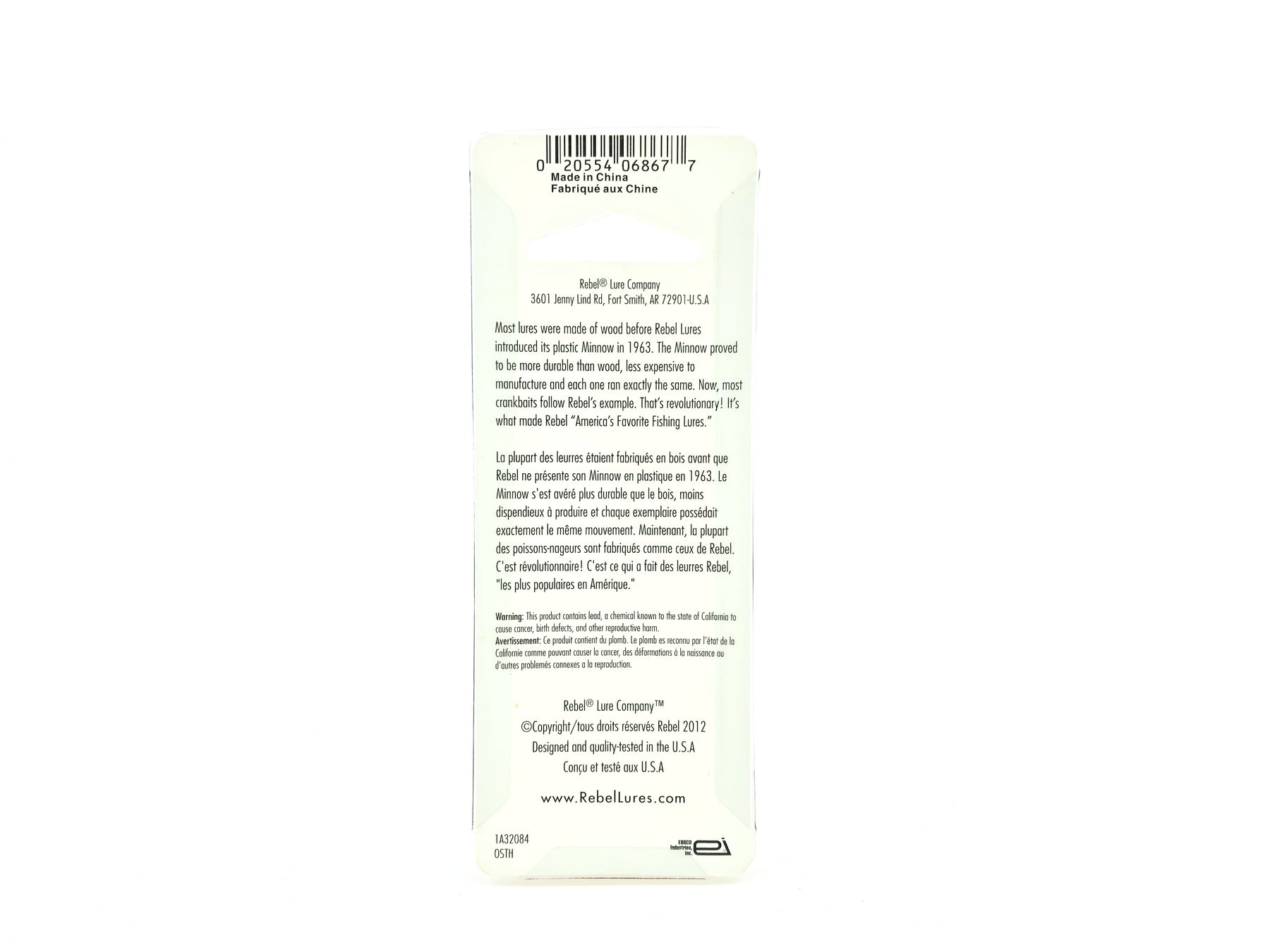 Rebel Wee-R Square Bill Fire Tiger Color New on Card Old Stock. Lure about 2" long not including lip. Classic F93 Rebel here. Getting harder to find these. A long time classic bait with a great wiggle and easy retrieve. One of the all-time bass greats.