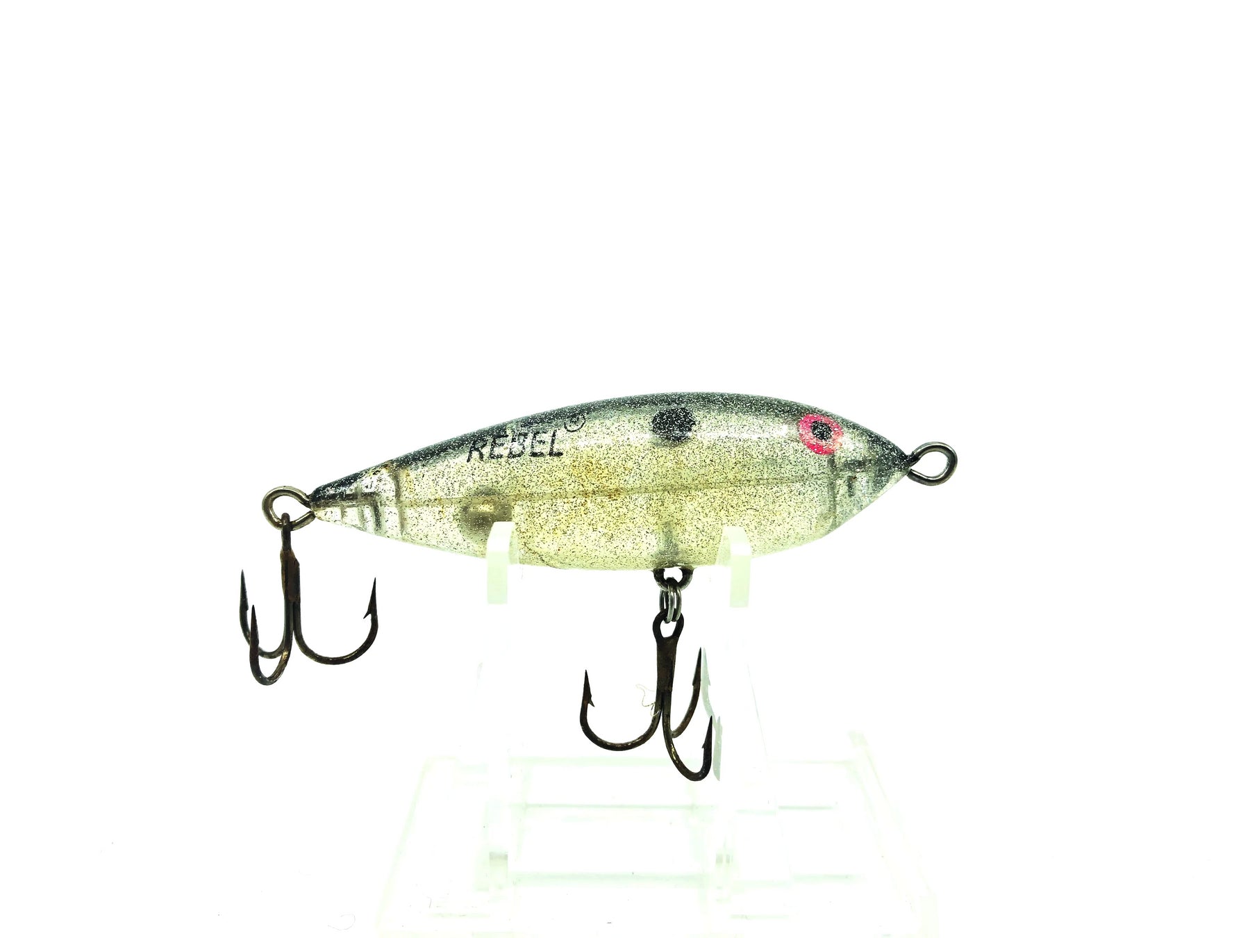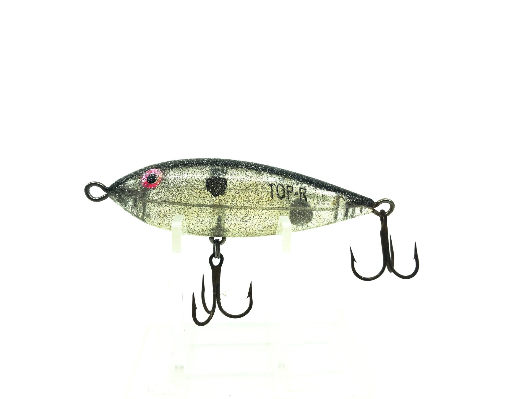 Rebel Top-R Black/Clear Sparkles. Harder to find Rebel that was only made for a very short time. About 2 3/4" long. In great condition aside from some minor wear. Fish or collect, see photos.