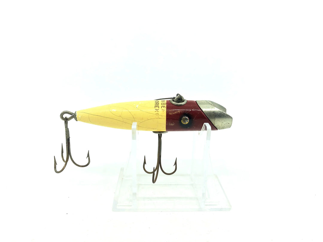 South Bend Fish-Oreno Red Head White Color. Great vintage wooden lure here. About 3 1/2" long. Made by South Bend from 1926-1952. This lure has a metal front to it designed to run deep. Used vintage lure has wear as shown in photos but still in overall good condition. See photos. Would be great for fishing or add to that vintage display.