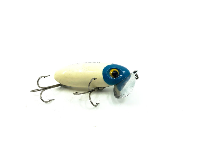 Arbogast Jitterbug 5/8oz ,#8 Blue Head Color, Vintage Bugged-Eyed Model. About 2 1/2" long. Lure has some minor wear and a few small markings. Aside from that this lure is in good condition. Fish or display, see photos.