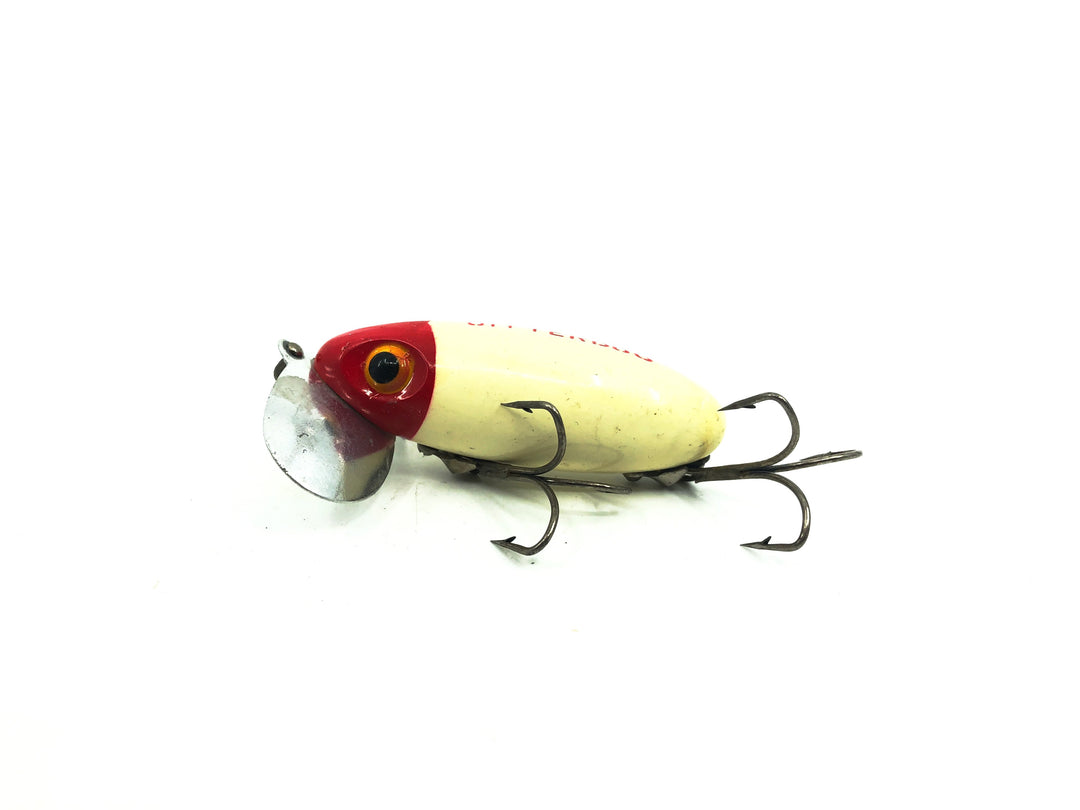 Arbogast Jitterbug White/Red Color, Vintage Bugged-Eyed Model. About 2 1/2" long. Used with some minor wear. Fish or display, see photos.