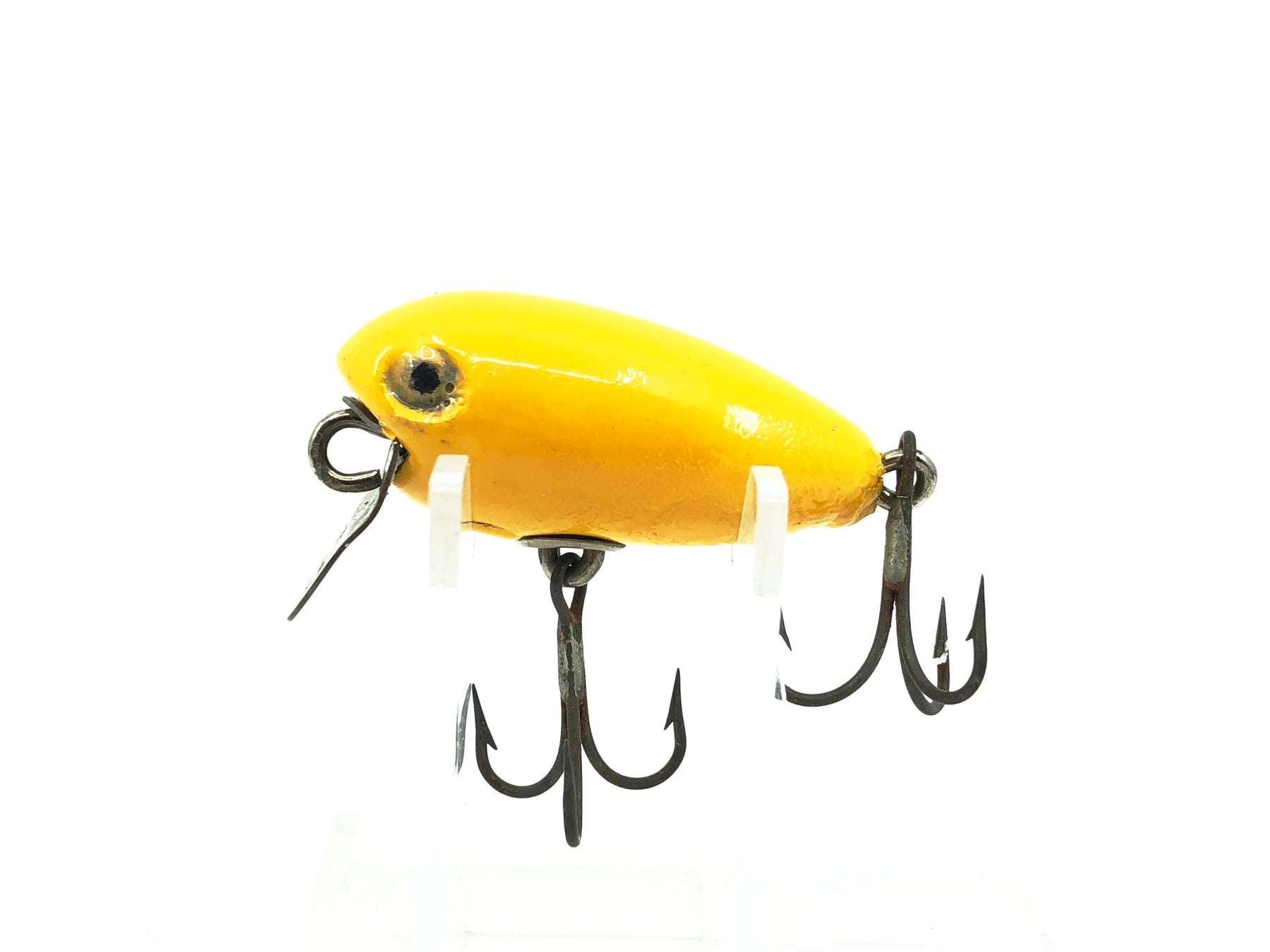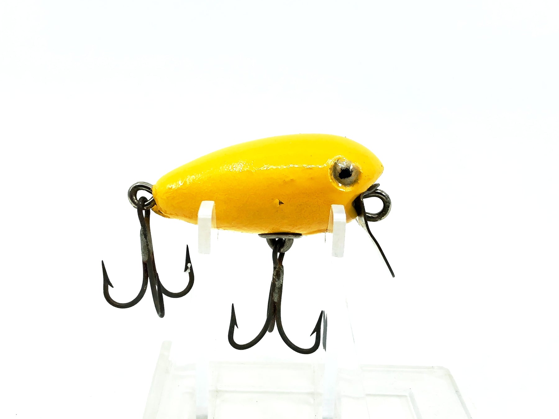 Shakespeare Grumpy, Yellow Color. I think this one is a repainted. Not 100% sure, but that's my opinion. About 1 3/4" long. This lure is used with some wear but in ok overall condition, see photos. Fish or collect.