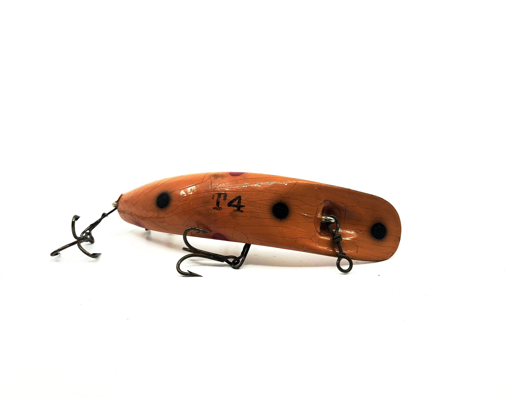 Vintage Helin Flatfish T4 OR Orange Color. About 3 1/2" long. Used vintage lure with some minor wear but in overall good condition. Classic lure here. See photos. Fish or collect!