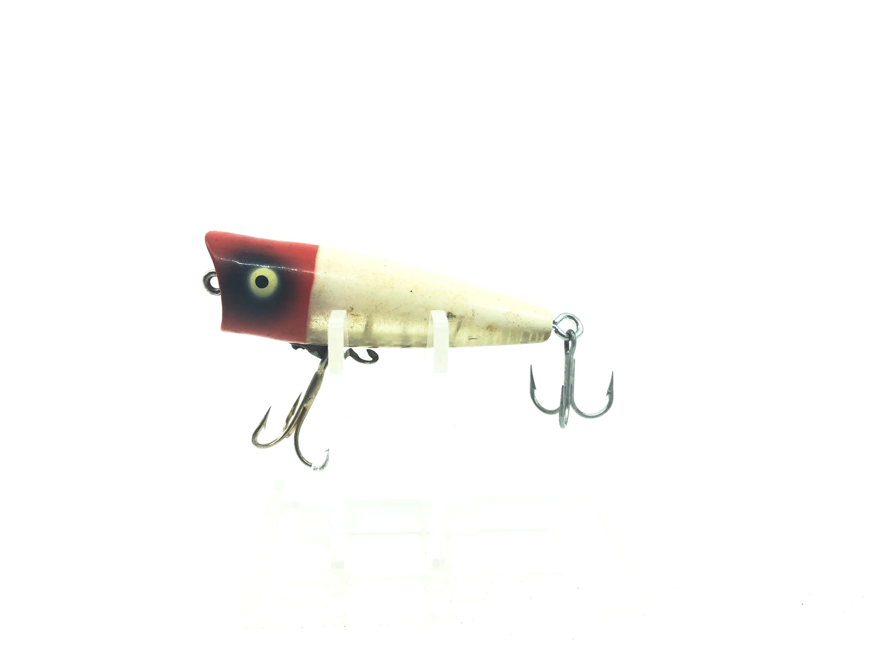 Heddon Tiny Chugger WH White Red Color. About 2 3/8" long. Used with some minor aside from the broken hardware on the bottom, but still overall good condition. Fish or collect a classic Heddon bait.