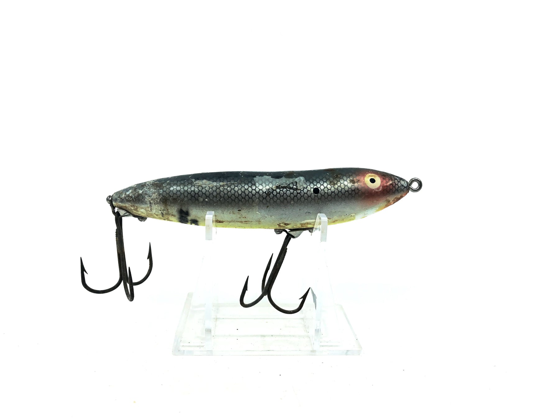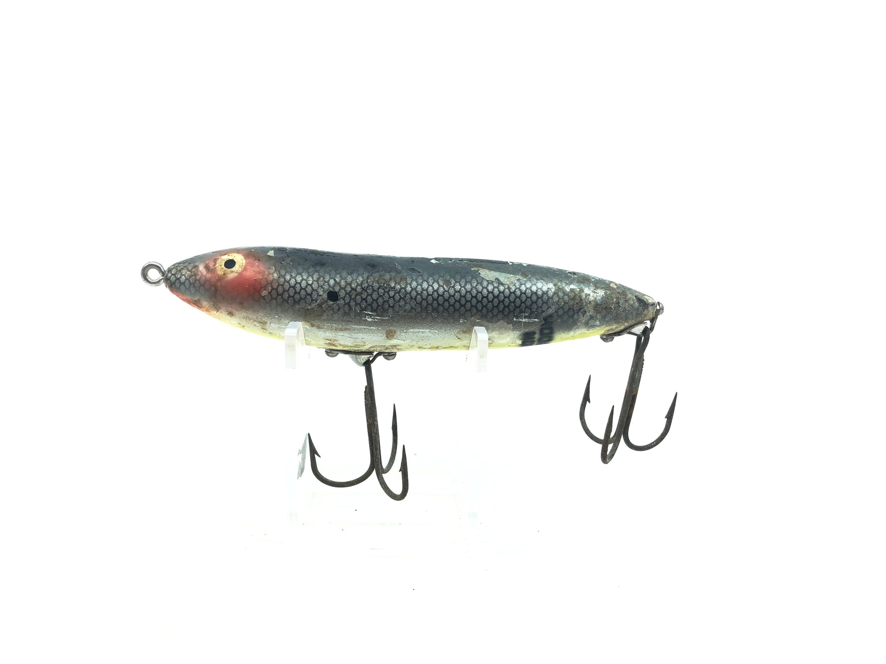 Heddon Original Zara-Spook Sway Back SD Shad Color. Hard to find collectible bait. About 4 1/4" long. Used with a good amount of wear, see photos. Classic Heddon lure. Fish or collect.