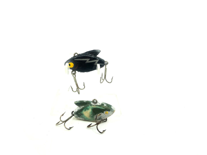 Imitation Heddon Sonic Combo, Black/Frog Color. Both are about 1 1/2" long. Lures are used with wear and marks but in ok condition.  Great to fish! See photos.
