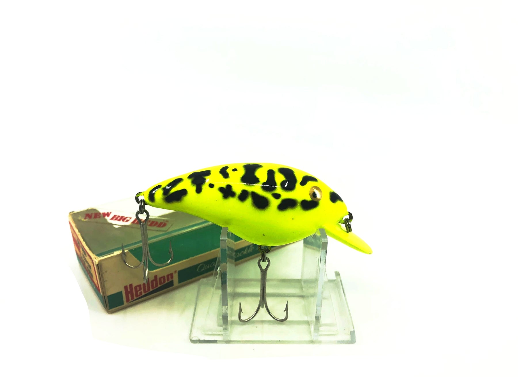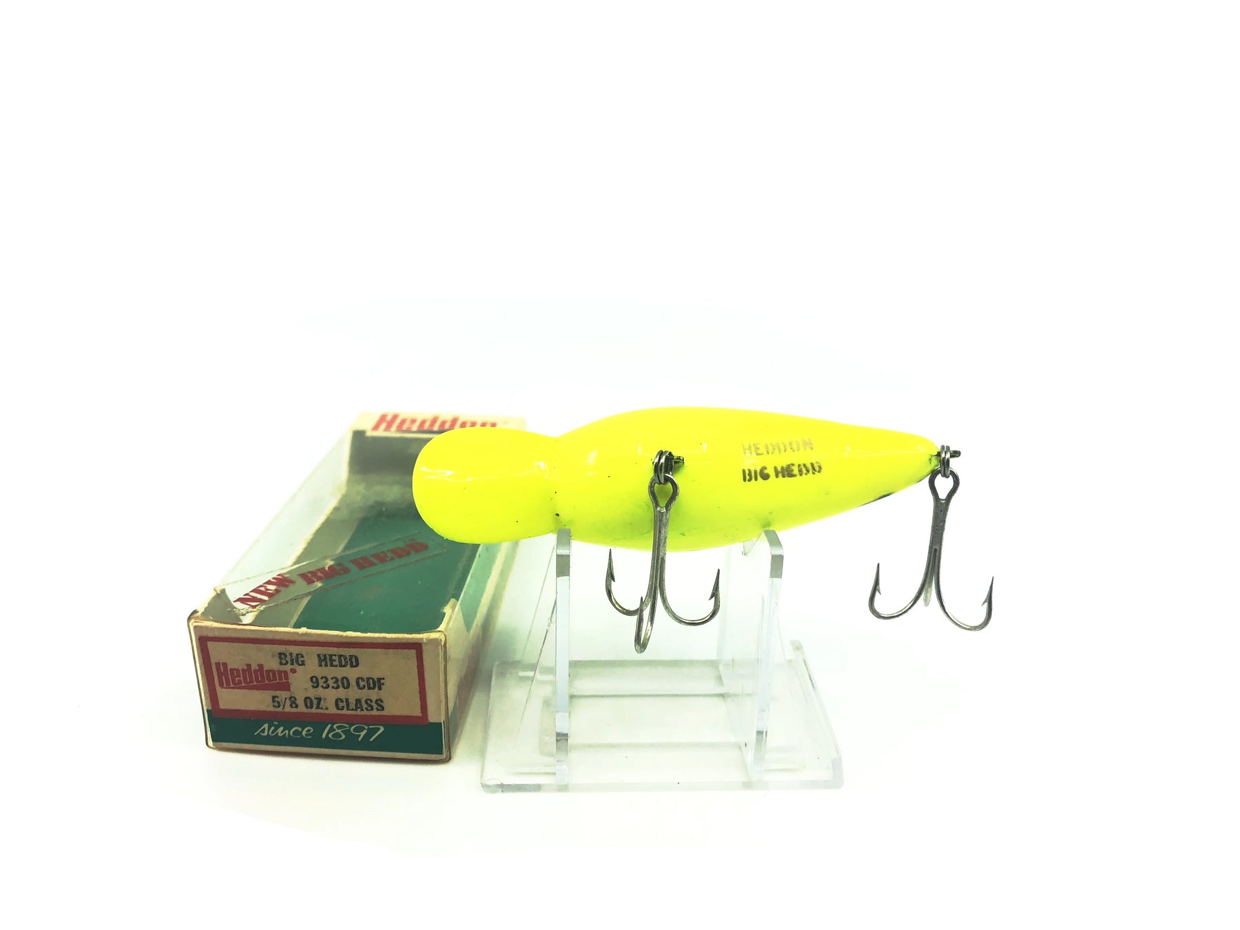 Heddon Big Hedd 9330 CDF Chartreuse Coach Dog Color with Box. Great lure here new with box. Appears unfished. Lure is about 3" long. Box is in great condition with little wear. Lure is nice. See photos.
