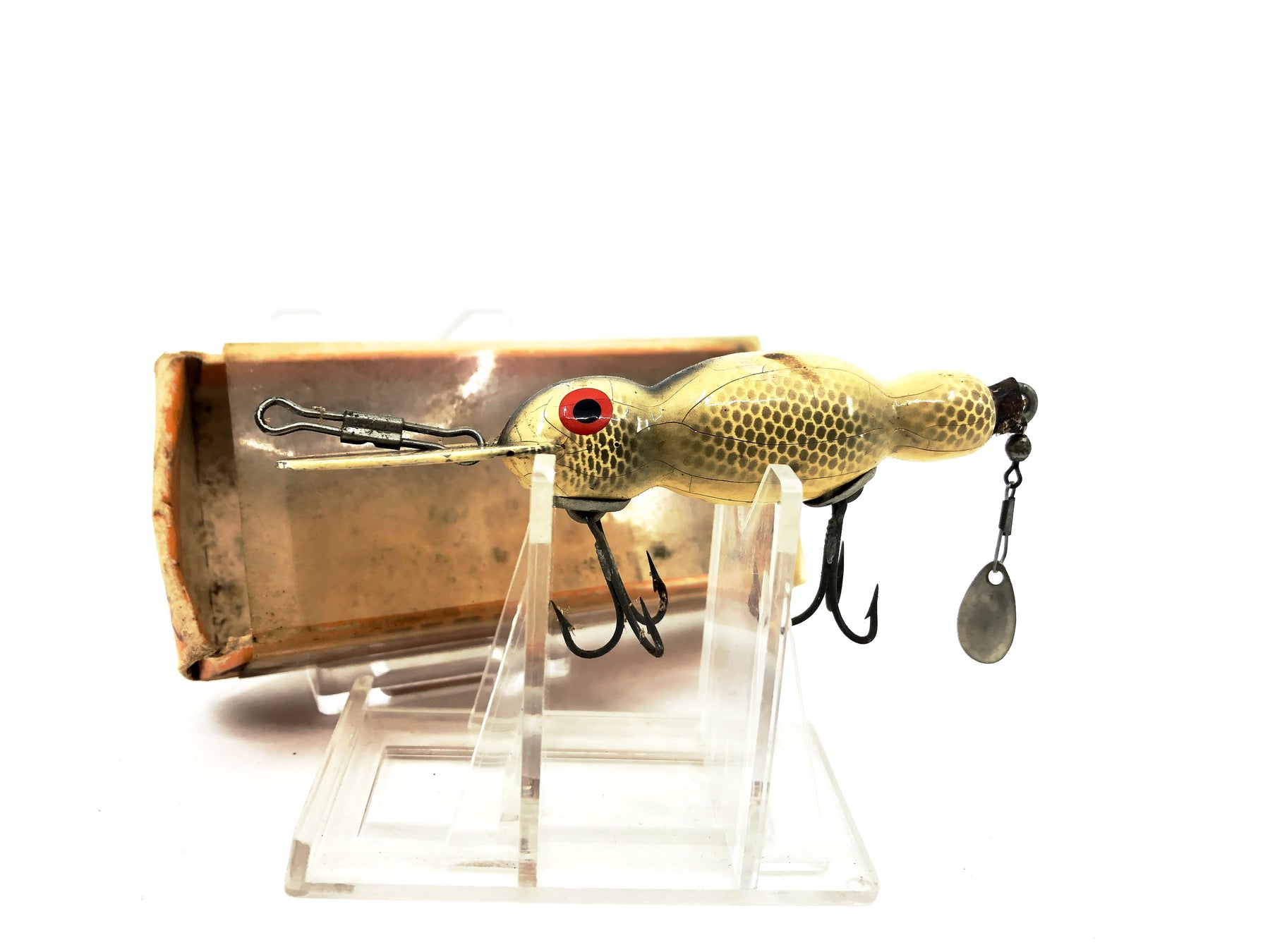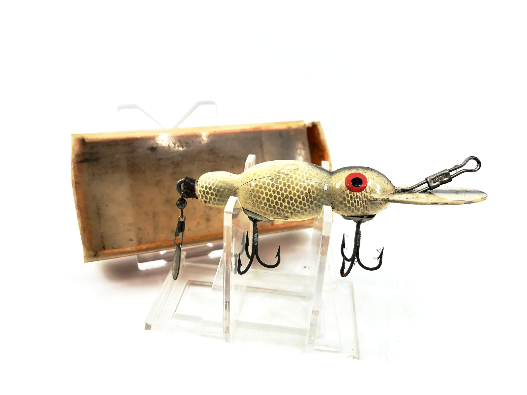 Bomber Wooden Water Dog 1500, #58 Smoke Color with Box. Great matching combo. About 3 1/4" long including lip. Lure is used but in good condition with some wear and some marks. Box is in ok condition aside from some wear, see photos.