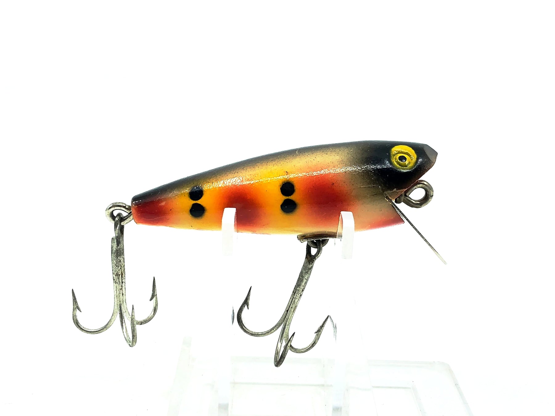 Shakespeare Glo Lite Pup, Strawberry Color. Hard to find this glow in the dark Shakespeare here. About 2 1/2" long body. This lure is used with some minor wear but in good condition, see photos. Fish or collect.
