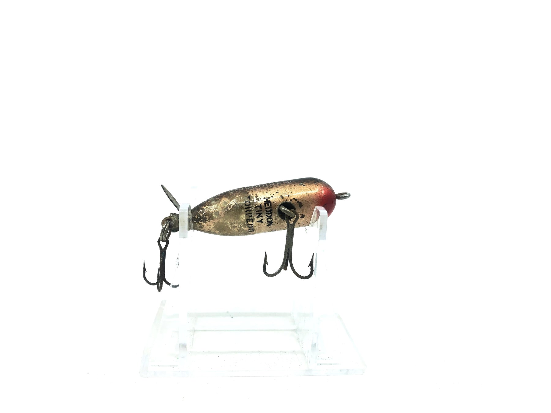 Heddon Tiny Torpedo NBL Nickel Black Color. Lure is about 2" long. Used but in ok condition with some wear and paint chips. Iconic top water bait to fish or collect. See photos.