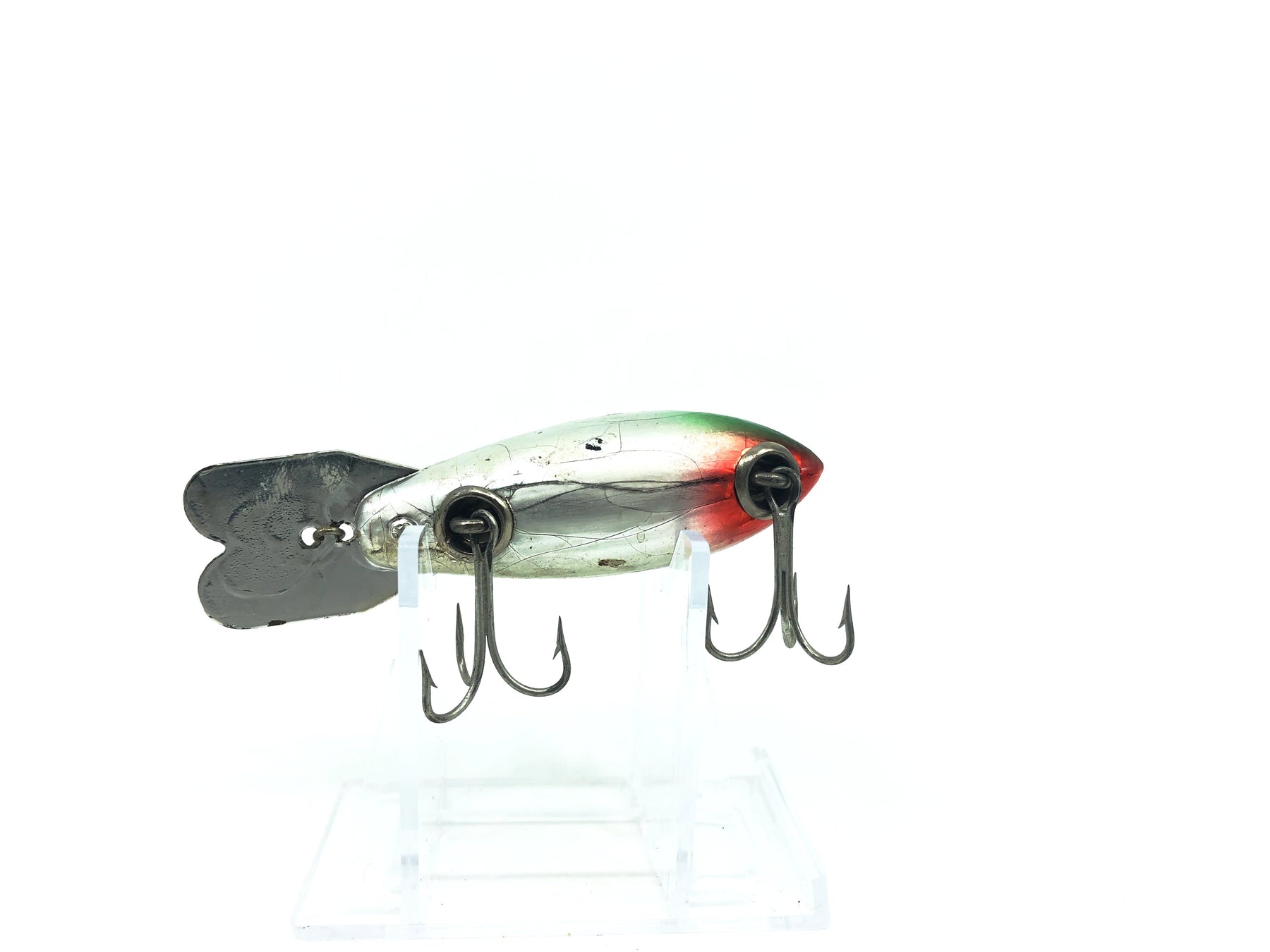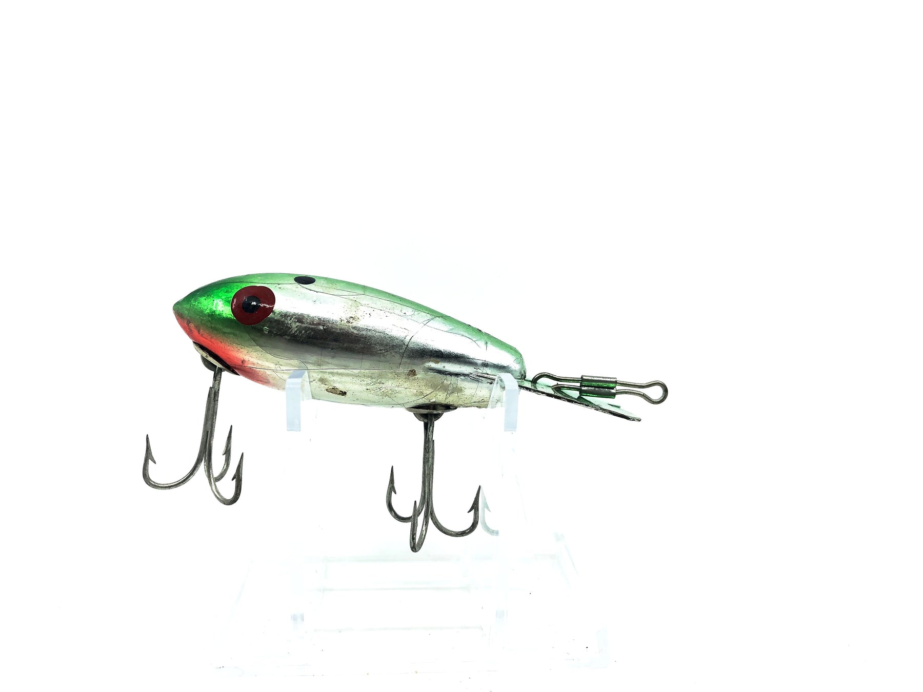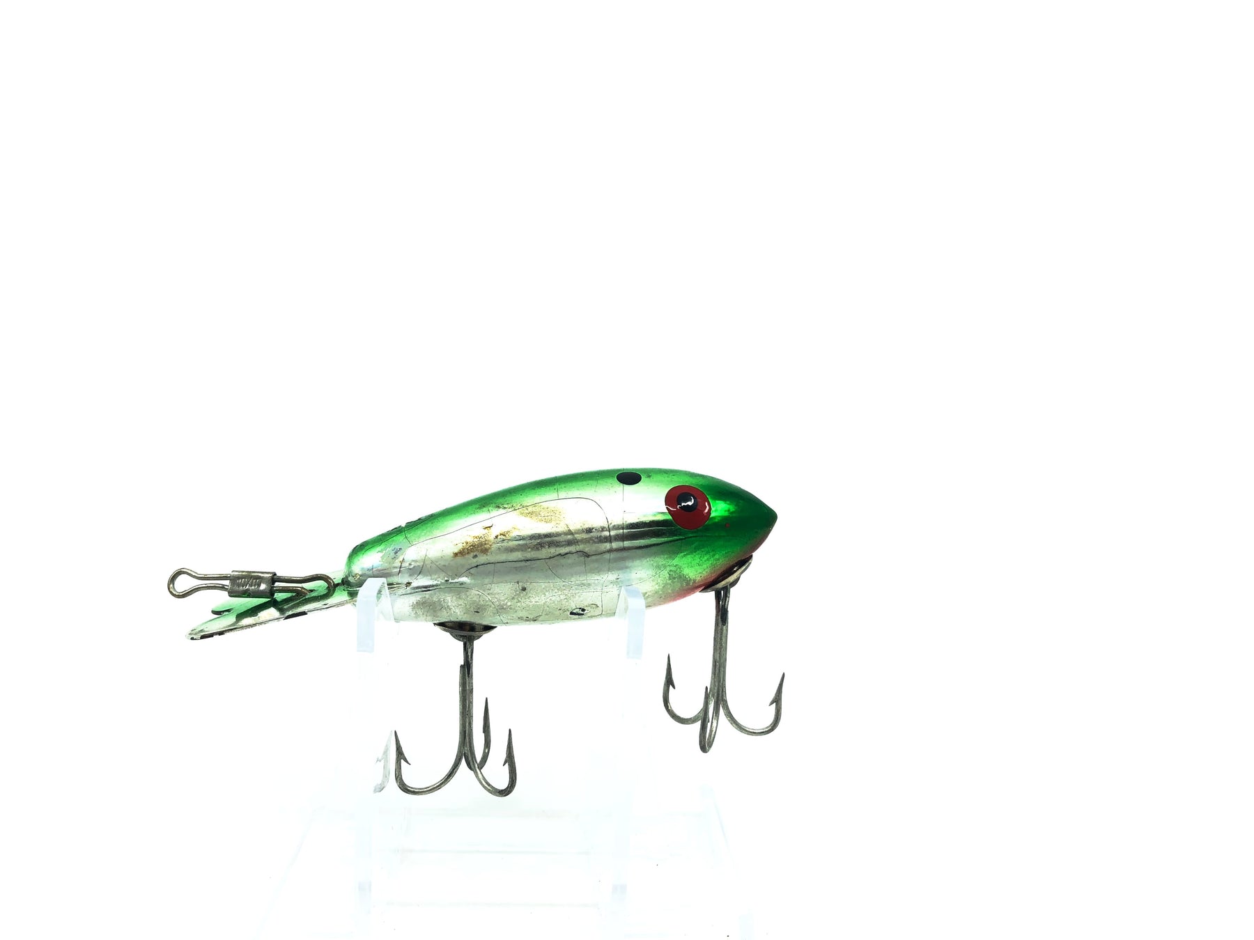 Wooden Bomber 400 Series MG Metachrome Green Color. At about 3 1/4" long this lure is in good condition with some minor wear. Classic lure that isn't made anymore in an iconic color. See photos.  Tougher lure to find in nice shape in wooden version.
