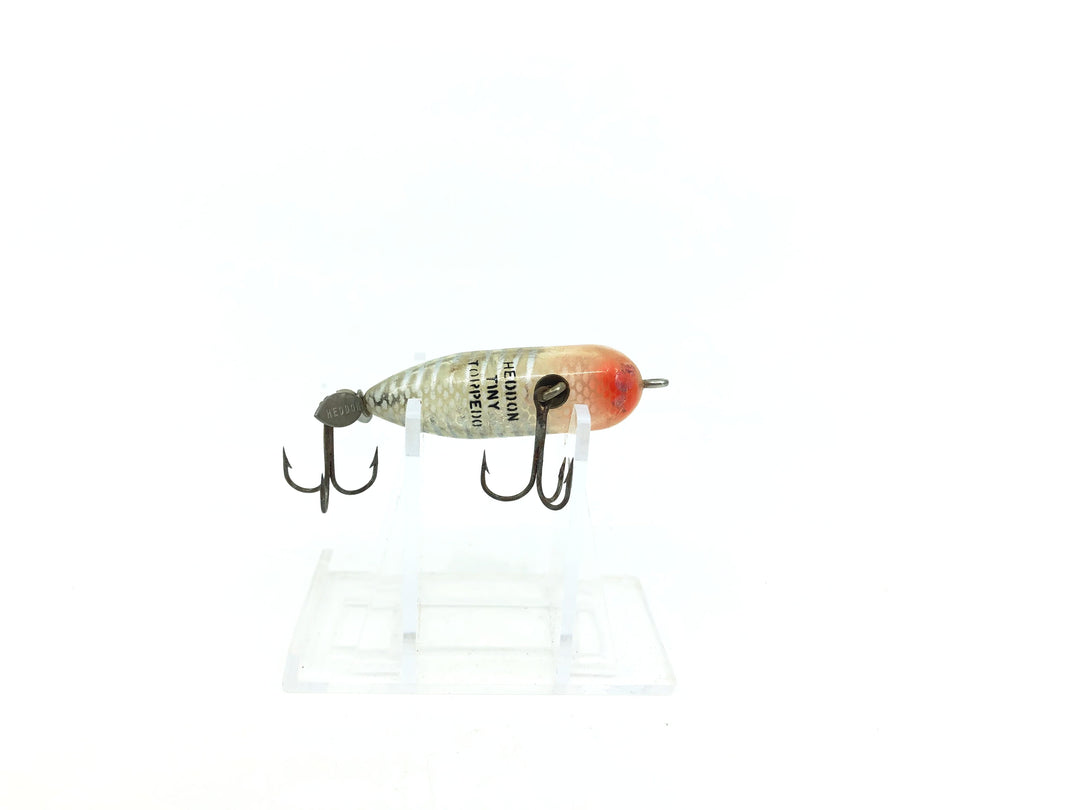 Heddon Tiny Torpedo XRW White Shore. Lure is about 2" long. Used but in good condition aside from some minor wear. Iconic top water bait to fish or collect. See photos.