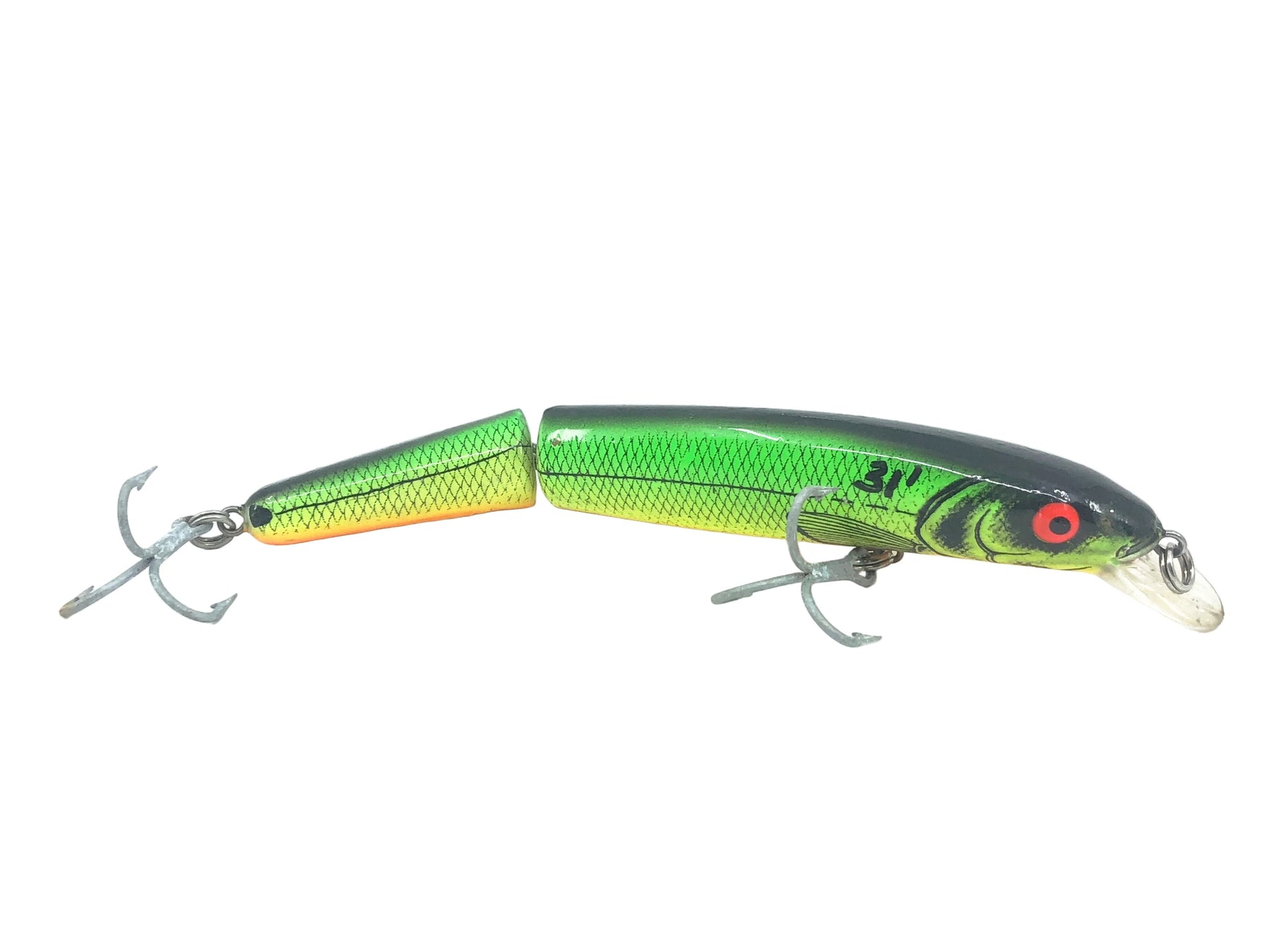 Bomber Heavy Duty Jointed Long A 16J XM7, Fire River Minnow/Orange Belly Color. At about 6" long this larger Long A is used and has some minor wear, but overall in good condition. Perfect to fish or collect.