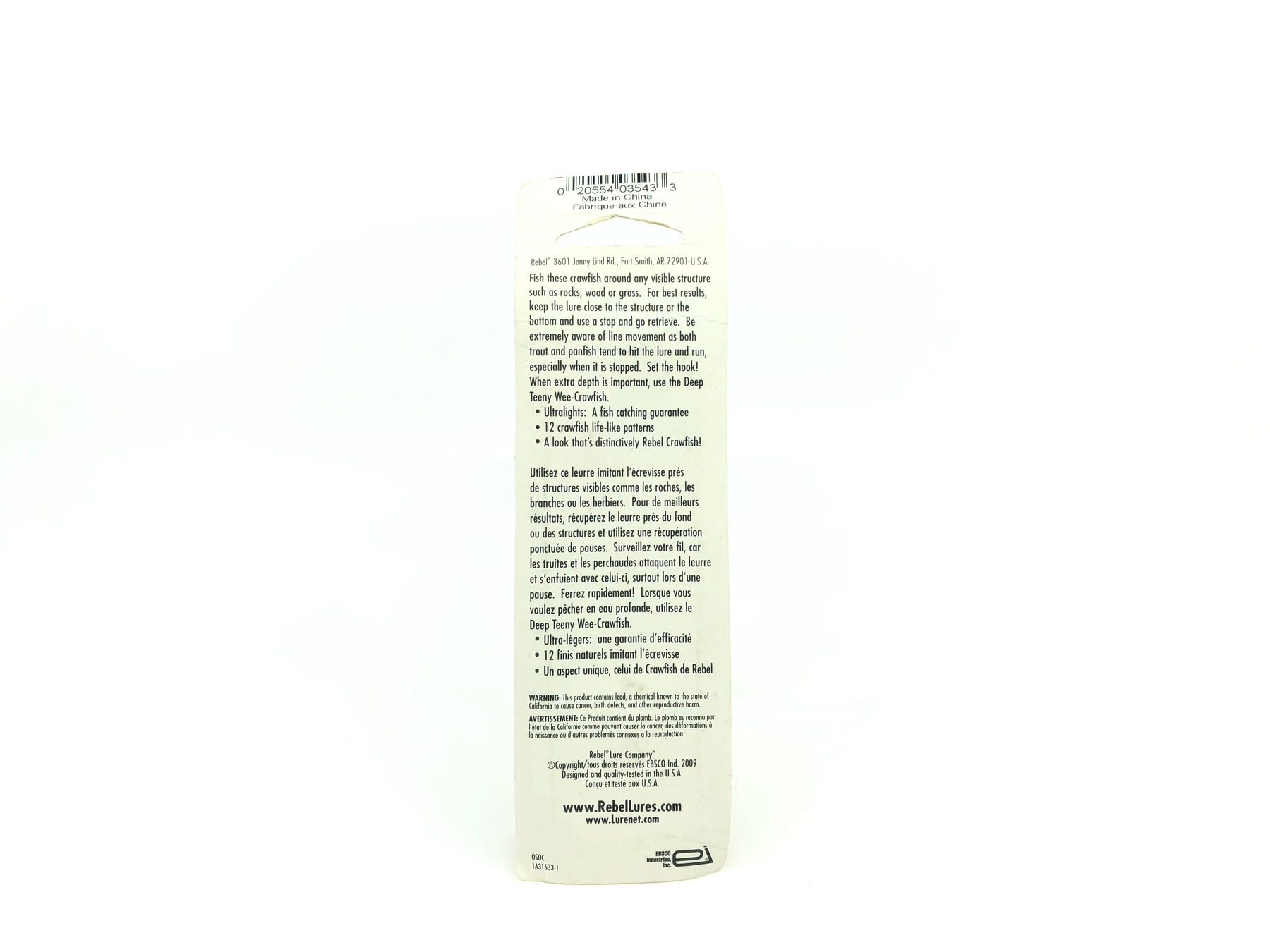 The Rebel Crawfish is the original realistic crawfish crankbait. No other crankbait mimics a fleeing crawfish better than a Rebel Craw. It’s the super-realistic body and paint scheme combined with the distinct pulsating action that makes it irresistible to fish. Effective on largemouth and smallmouth bass, walleyes, all species of trout and other gamefish.