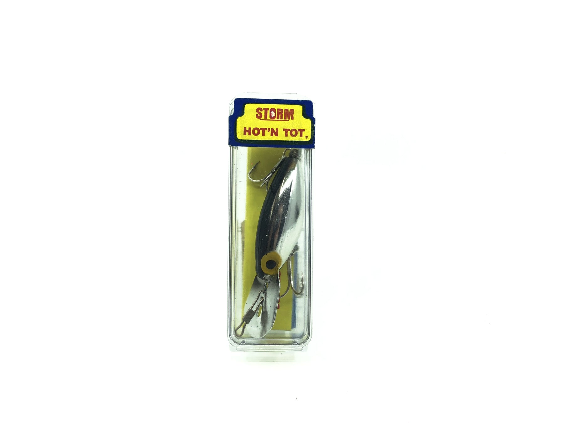 Storm Thin Fin Hot 'N Tot AH103 Metallic Silver/Black Back Throat Color. Classic pre-Rapala lure here. About 3" long. The box has some minor wear but the lure is in very good condition. Harder to find metallic series color. Great diving lure that provides plenty of action. See photos.
