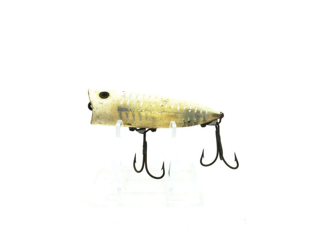 Heddon Chugger Spook 9542 XRW White Body Silver Shore Minnow Color. Great Heddon bait here. Lure is used has some wear, damage, and a broken barb but still in ok condition, see photos. Lure is about 3" long. Grab this one while can! Tougher color variant to find.