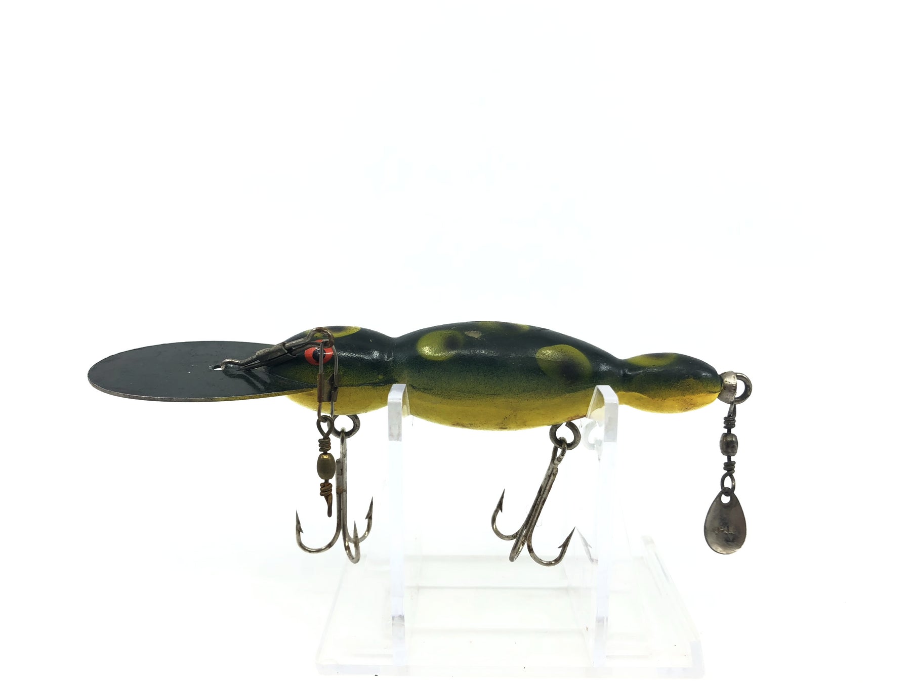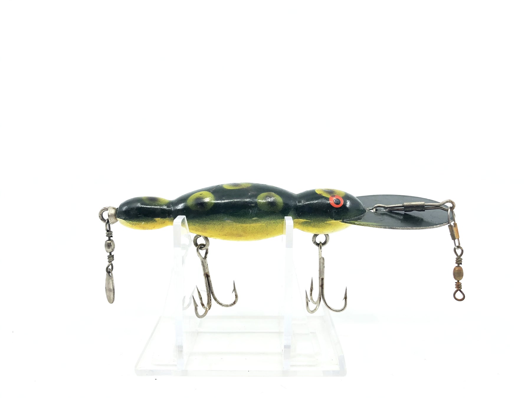 Imitation Bomber Water Dog Frog Yellow Belly. Great lure here for any fishermen. This is a very well crafted imitation lure. About 4 1/2" long and with some minor wear but overall in great condition. See photos.