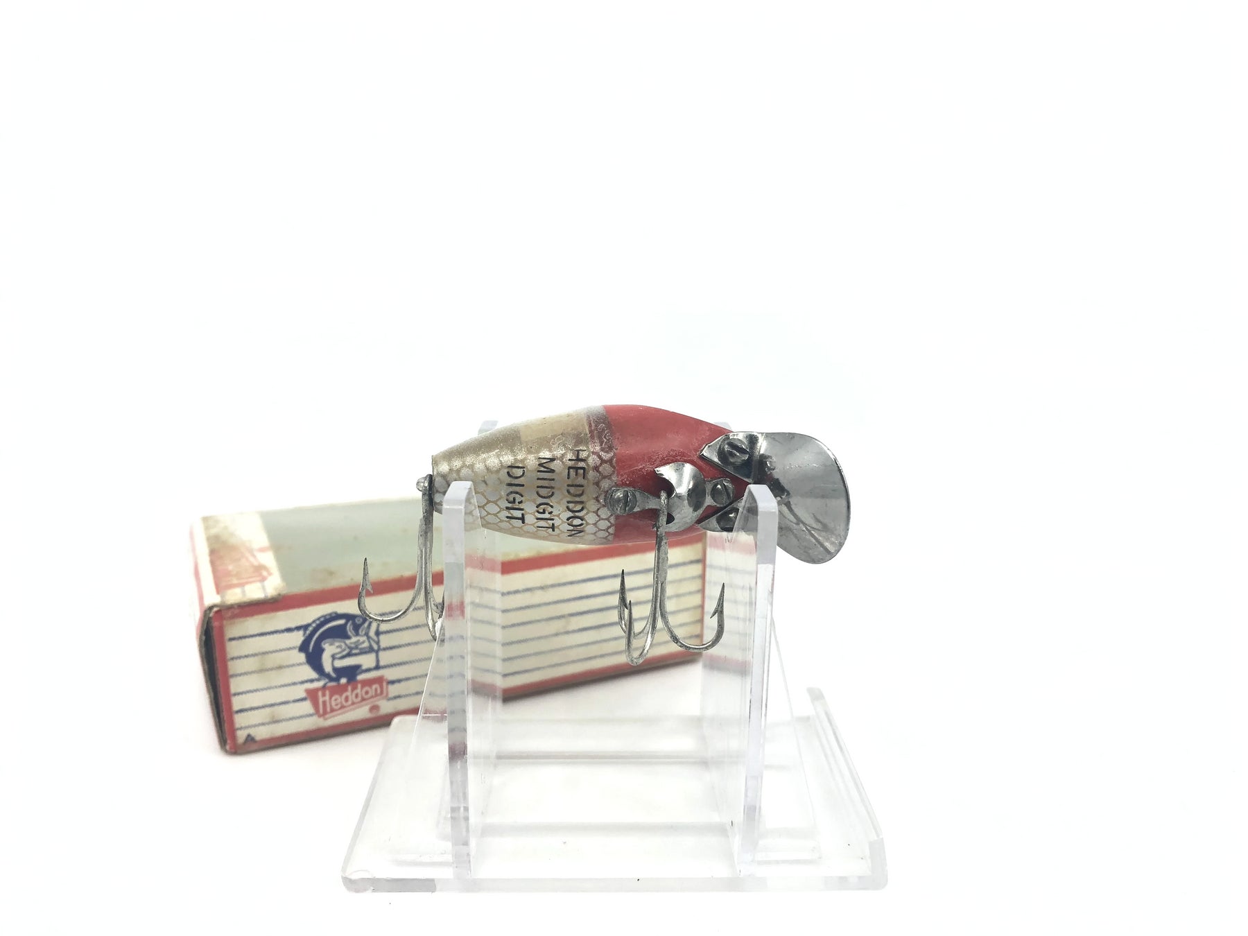 Heddon Midget Digit Runt 9020 RH Red Head White Body Color with Box. Great classic lure here from Heddon. Old stock dating probably to the 1970's. Lure has some waxing, box is in good condition with some wear. About 1 5/8" long. Grab this one while you can. Fish or collect.