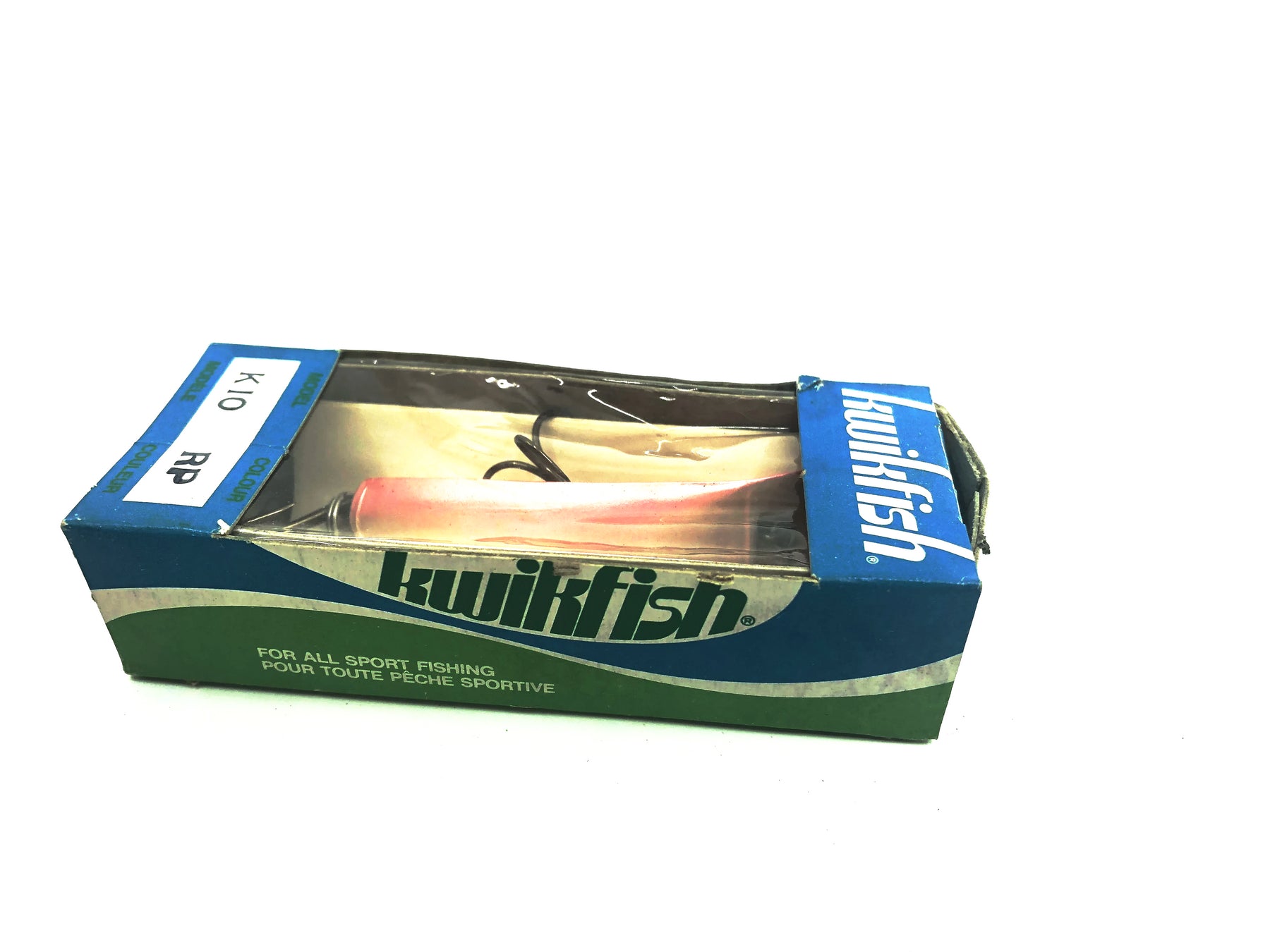 Pre Luhr-Jensen Kwikfish K10 RP Red Pearl Color New in Box Old Stock. Pre Luhr-Jensen and Pre Rapala. The K10 is listed as 3" long and weighing 7 grams. New old stock here. Box in nice shape aside from some minor wear and dents, lure has some wear and marks, see photos. Cast or troll. Awesome lure for fishing, especially muskies, big pike, bass and walleye and very tough to find. Grab this one while you can. Collect or fish.