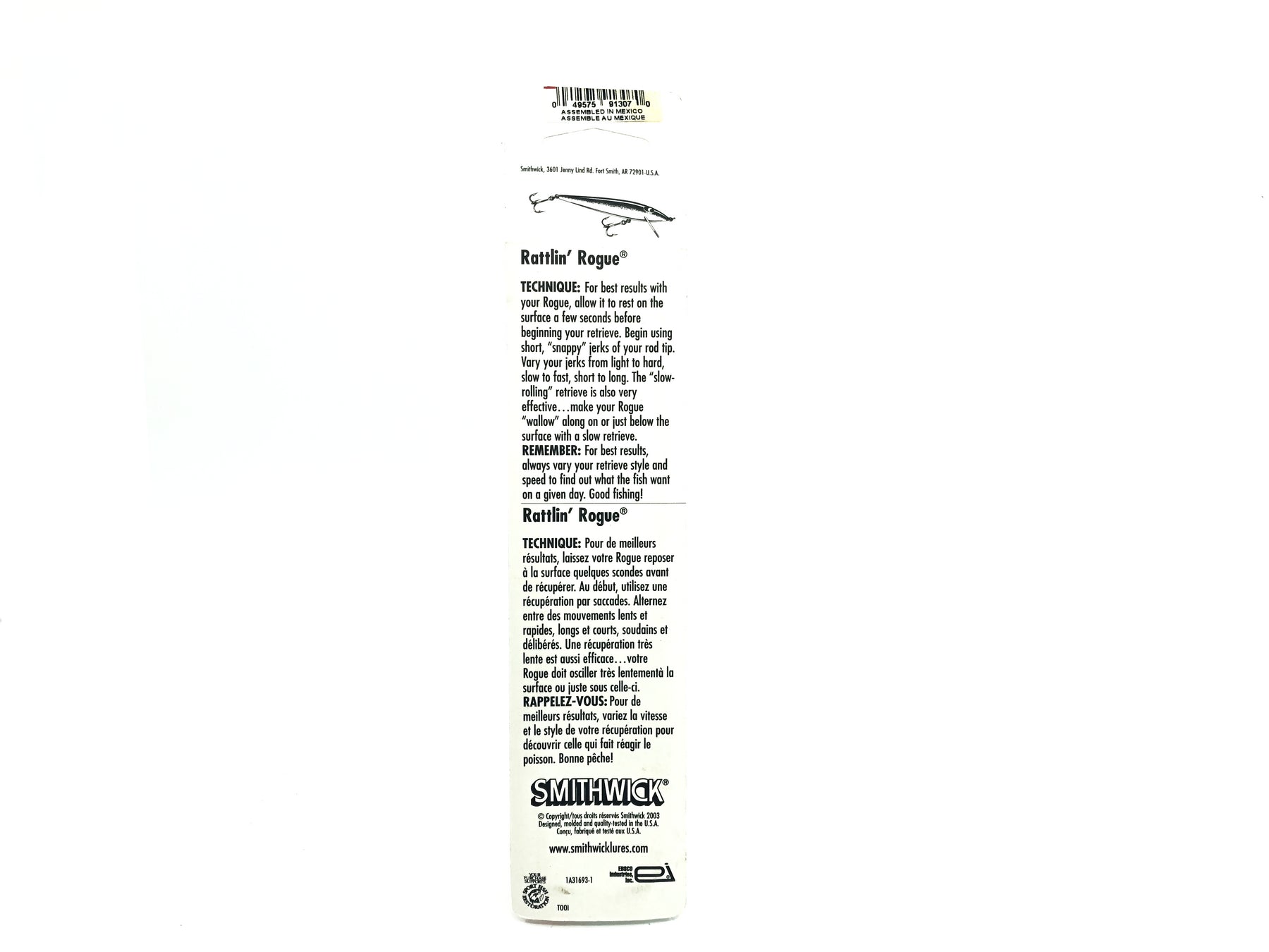 Smithwick Deep Suspending Rattlin' Rogue Fire Tiger Color New on Card. Old stock here from around 2003 . The card has some dents and folds but the lure is in new condition. See photos. Lure is about 6" long including lip. Great deal here!
