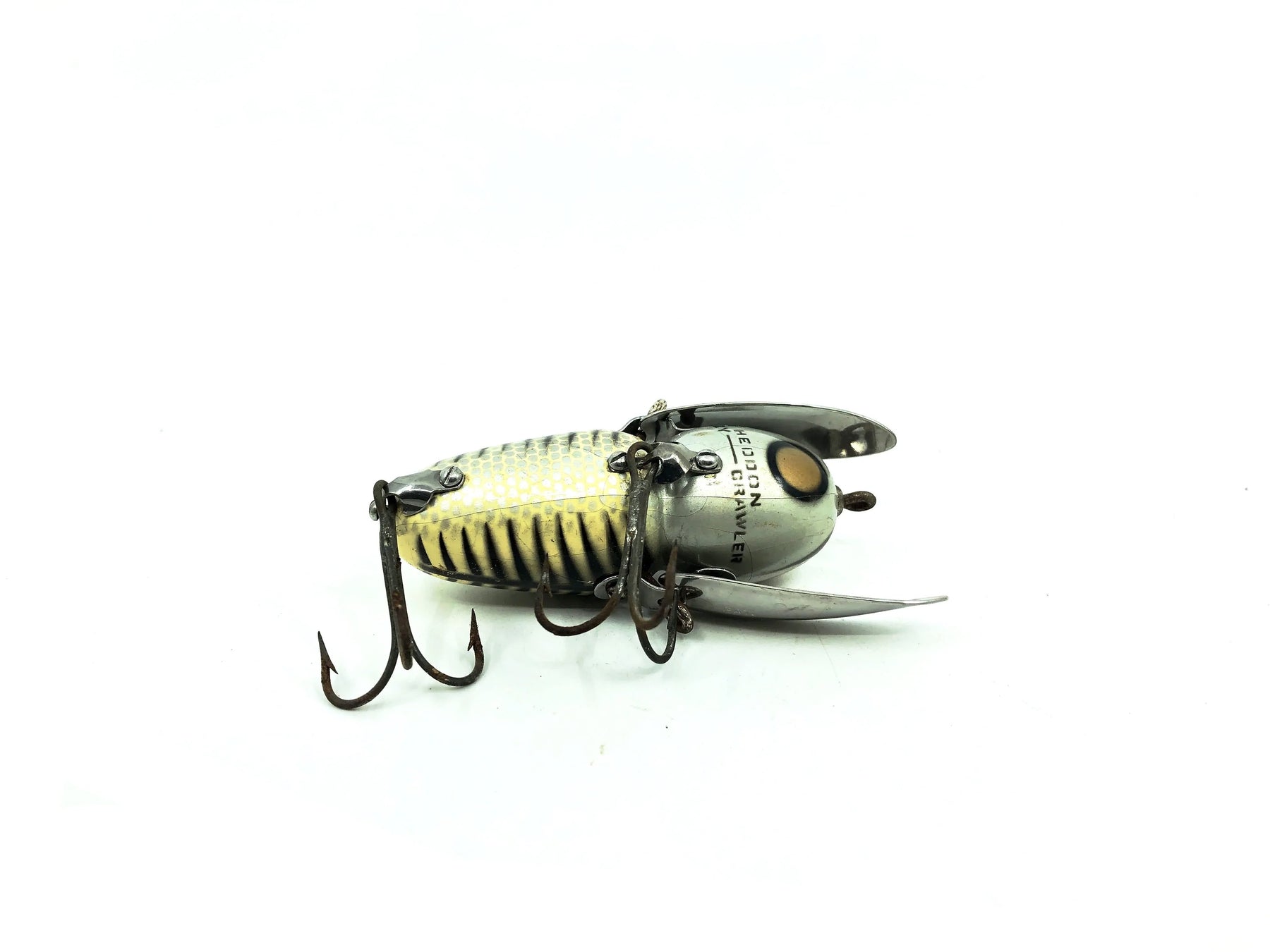 Heddon Wooden Crazy Crawler 2120 XRS Silver Shore Minnow Color. Beautiful Heddon vintage wooden Crazy Crawler. About 2 3/4" long. Lure is vintage but in nice condition with some marks, see photos. Very desirable Heddon bait.