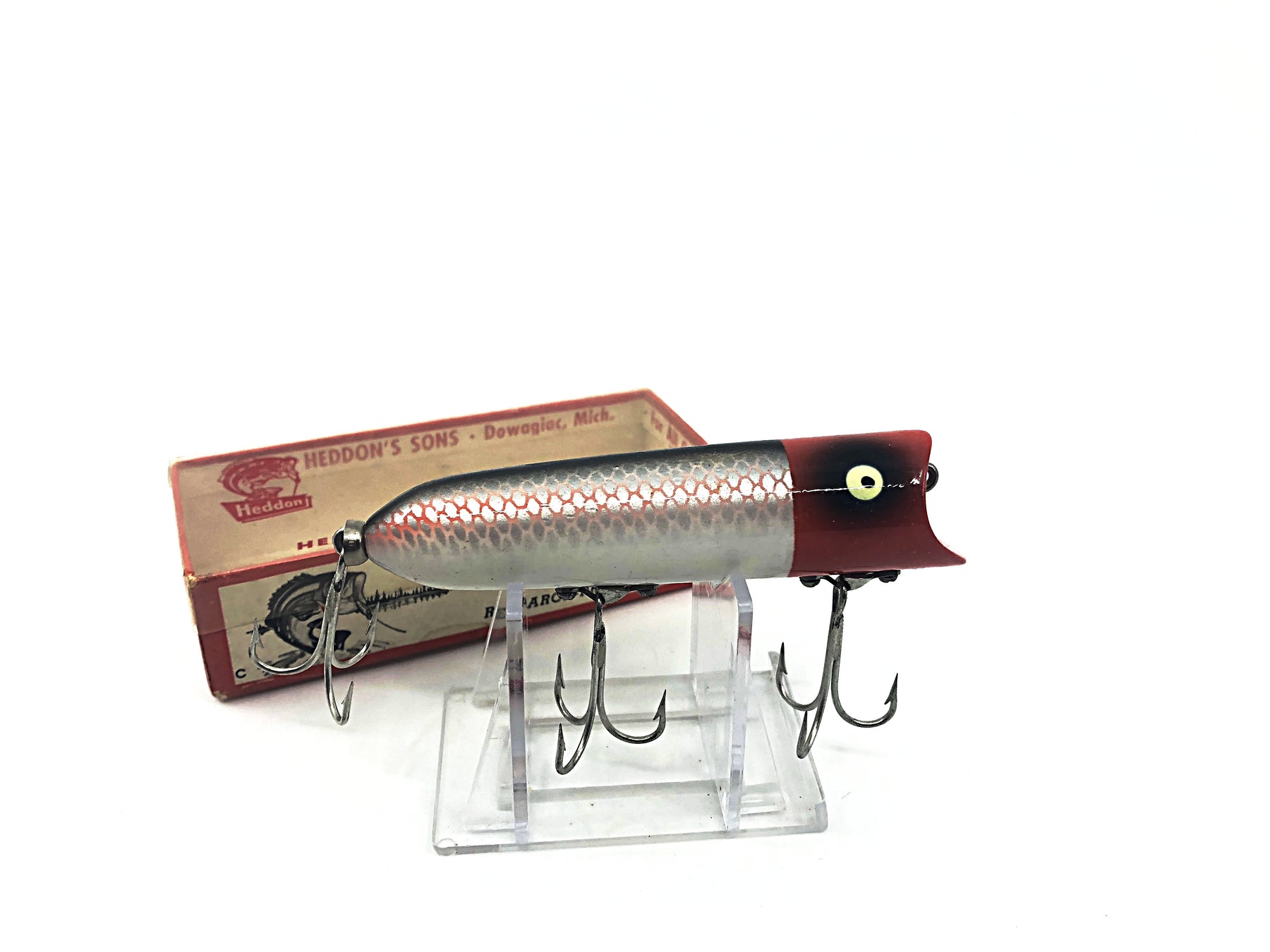 Heddon Lucky 13 2500 PRH Shiner Scale Red Head with box. Great vintage combo here. Lure is in great condition with some minor marks. See photos. About 3 3/4" long. Fish or collect.