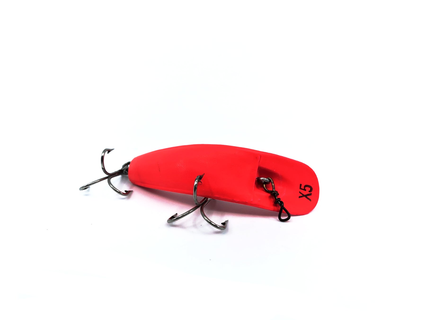 Vintage Helin Flatfish X5 Red Fluorescent Color. About 2 3/4" long. Used with some minor wear and marks but overall ok condition, see photos. One of the all time best lures ever made for fishing. See photos. Fish or collect, tough to beat a Flatfish. Vintage original Helin Tackle Company model.